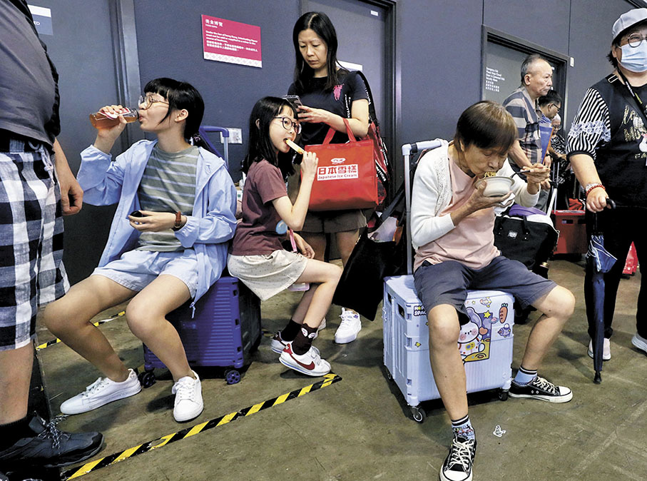 昨日是美食博覽最後一日,香港文匯報記者下午入場時,大批人流映入眼簾,不少市民或旅客帶備車仔或行李箱搶購筍貨,大多數兒童手上都手執雪糕、冰糖葫蘆、魚蛋等美食細細品味,個別攤位前排滿結賬人龍,現場通道不時阻塞,不少人停下腳步試食或選購貨品。