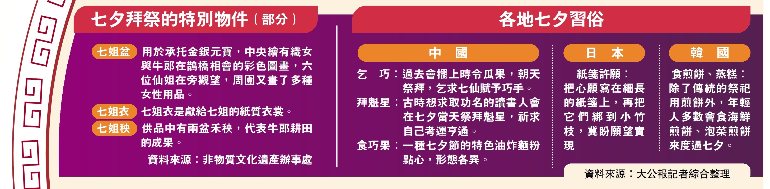 七夕是華人最重視的中式情人節,本港不少民眾保留拜七姐的習俗,例如坪洲仙姐廟,仍保留向七姐祈福的習俗。有遊客認為,多舉辦中國傳統文化活動,有助提升香港旅遊城市的吸引力。