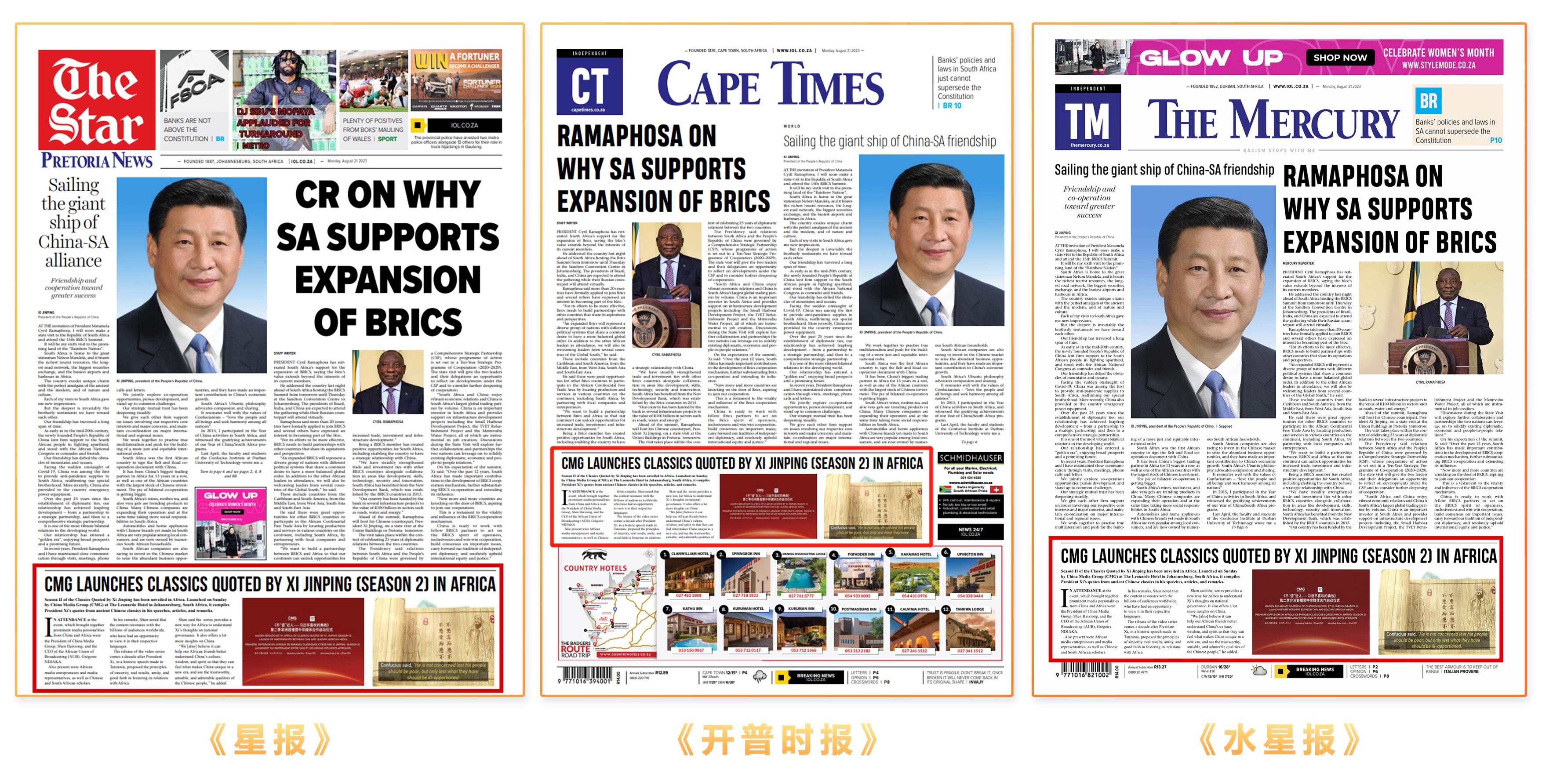 8月21日,南非三大主流報刊南非《星報》、《開普時報》、《水星報》在頭版顯著位置發表文章,對《平「語」近人——習近平喜歡的典故》第二季在非播出作了報道。