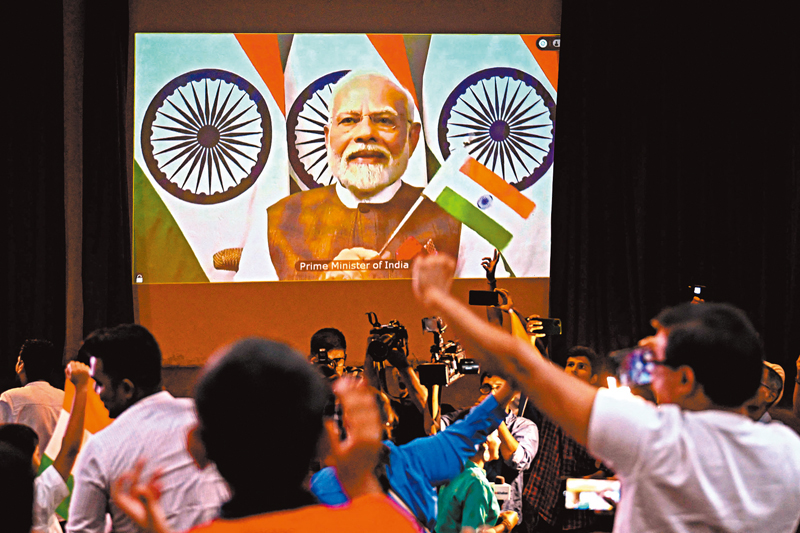 香港文匯報綜合報道,印度月球登陸器「月船3號」(Chandrayaan-3)周三成功在月球南極着陸,令印度成為繼蘇聯、美國和中國後,全球第4個在月球表面實現着陸的國家,也是首個成功讓登陸器着陸月球南極的國家。印度太空研究組織(ISRO)全程直播「月船3號」着陸過程,總理莫迪也全程觀看直播,並祝賀任務取得重大成功。印度希望今次探月任務能收集更多月球南極附近數據及影像,為月球探索邁出新一步。
