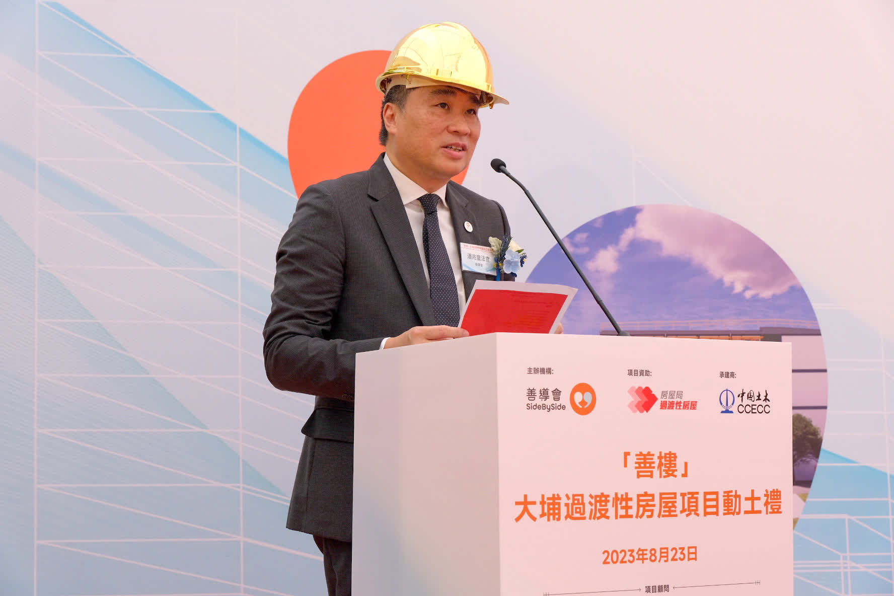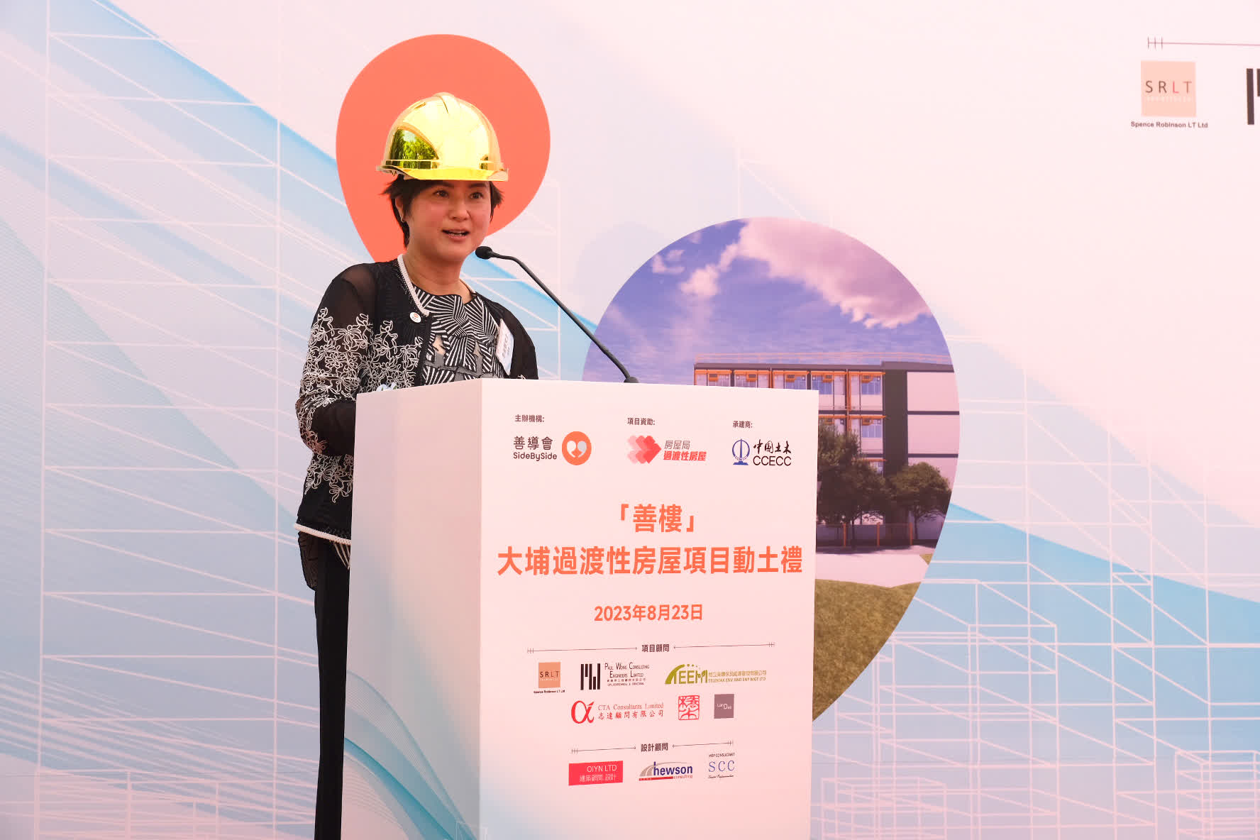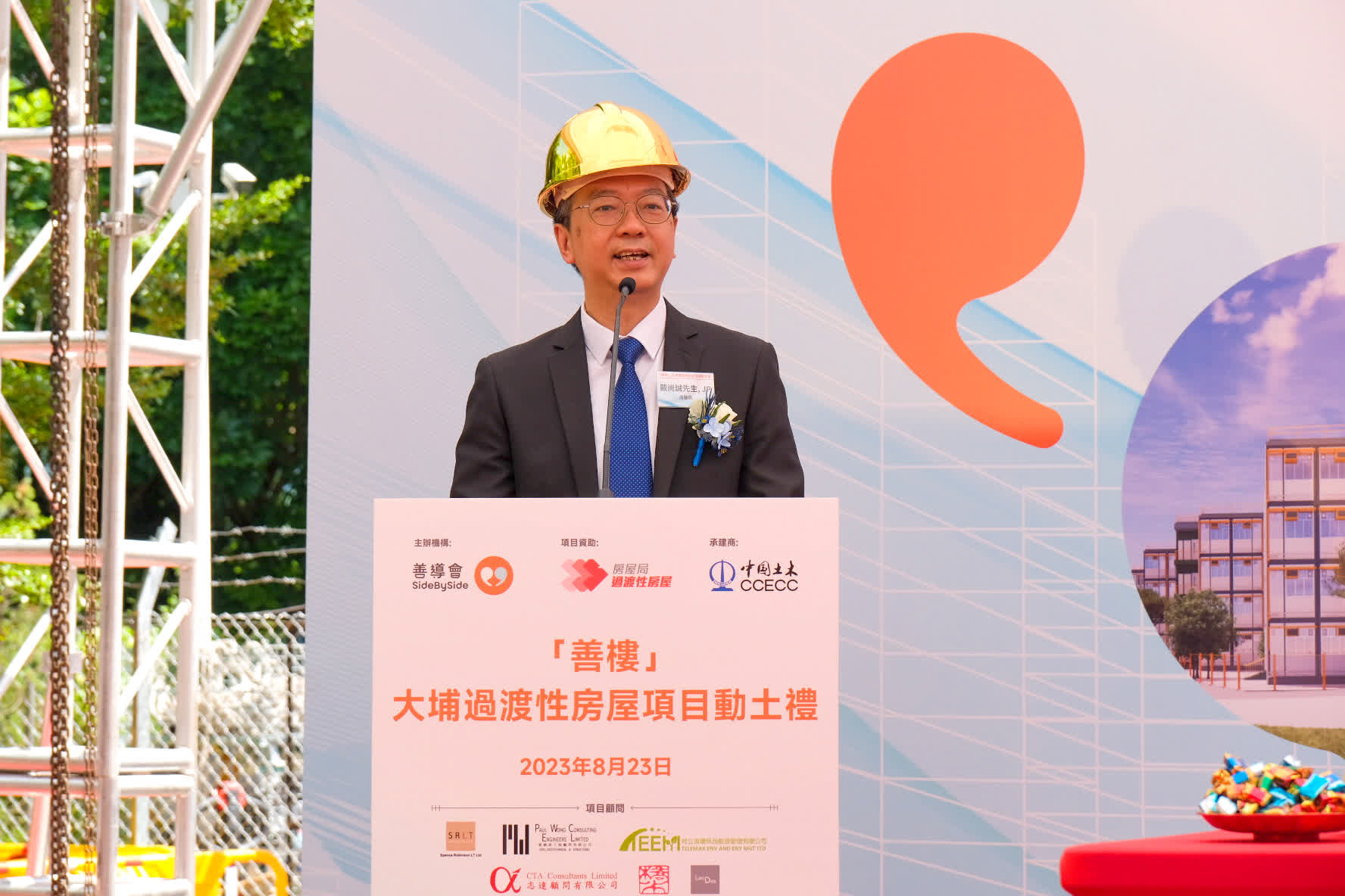 署理房屋局局長戴尚誠致辭時提及,覓地建屋乃是今屆政府重要計劃,現時本港投入服務的過渡性房屋約有8,000個單位,展望2024年可達到20,000個。房屋局推出「過渡性房屋住戶特別津貼試驗計劃」,估計受惠人次可達35,000,相信有助「善樓」申請人減輕搬遷和適應新居住環境期間的開支壓力。