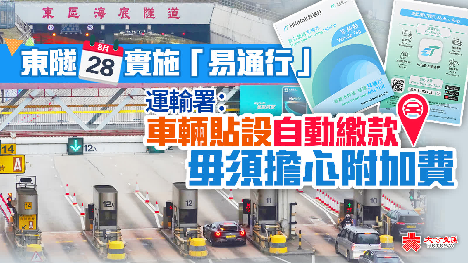 大公文匯全媒體報道,東區海底隧道將於本周日(27日)清晨5時起實施「易通行」,東隧及附近部分道路將於當日凌晨4時至5時封閉。