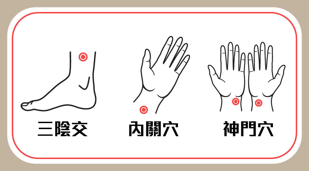 除了處方中藥,針灸亦是中醫常用作解決失眠的方法,透過針灸的輔助治療,可作鎮靜安神、改善睡眠障礙,主要穴位有內關穴、神門穴、三陰交穴等。另外也會輔以刮痧、拔罐等作治療。對於患者而言,中藥、中醫理療副作用及藥物依賴性低,是較為恰當的治療失眠解決方法。