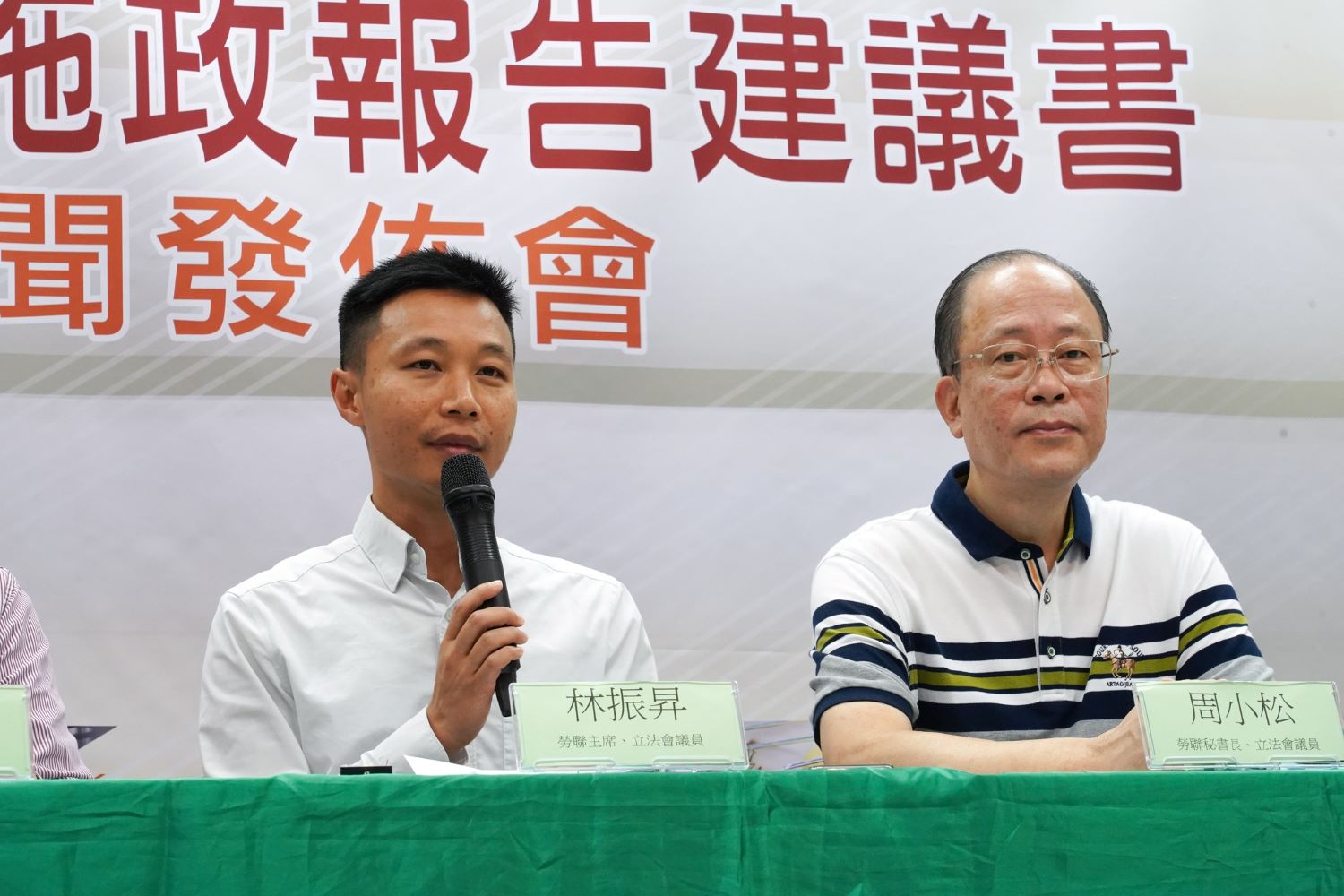 在勞工權益方面,勞聯秘書長、立法會議員周小松要求,為輸入外勞訂立清晰的退場準則及路線圖,並促請政府馬上調整或結束各項輸入外勞計劃。周小松認為,政府應以積極培訓及鼓勵就業為方針,吸引潛在勞動力投入市場。例如,可以參照內地的「媽媽崗」,提供工時及管理模式較彈性的職位,釋放更多婦女勞動力。除此之外,勞聯亦就最低工資「一年一檢」、為「工作過勞」設立官方定義及「過勞死」認定標準等提出改善措施。