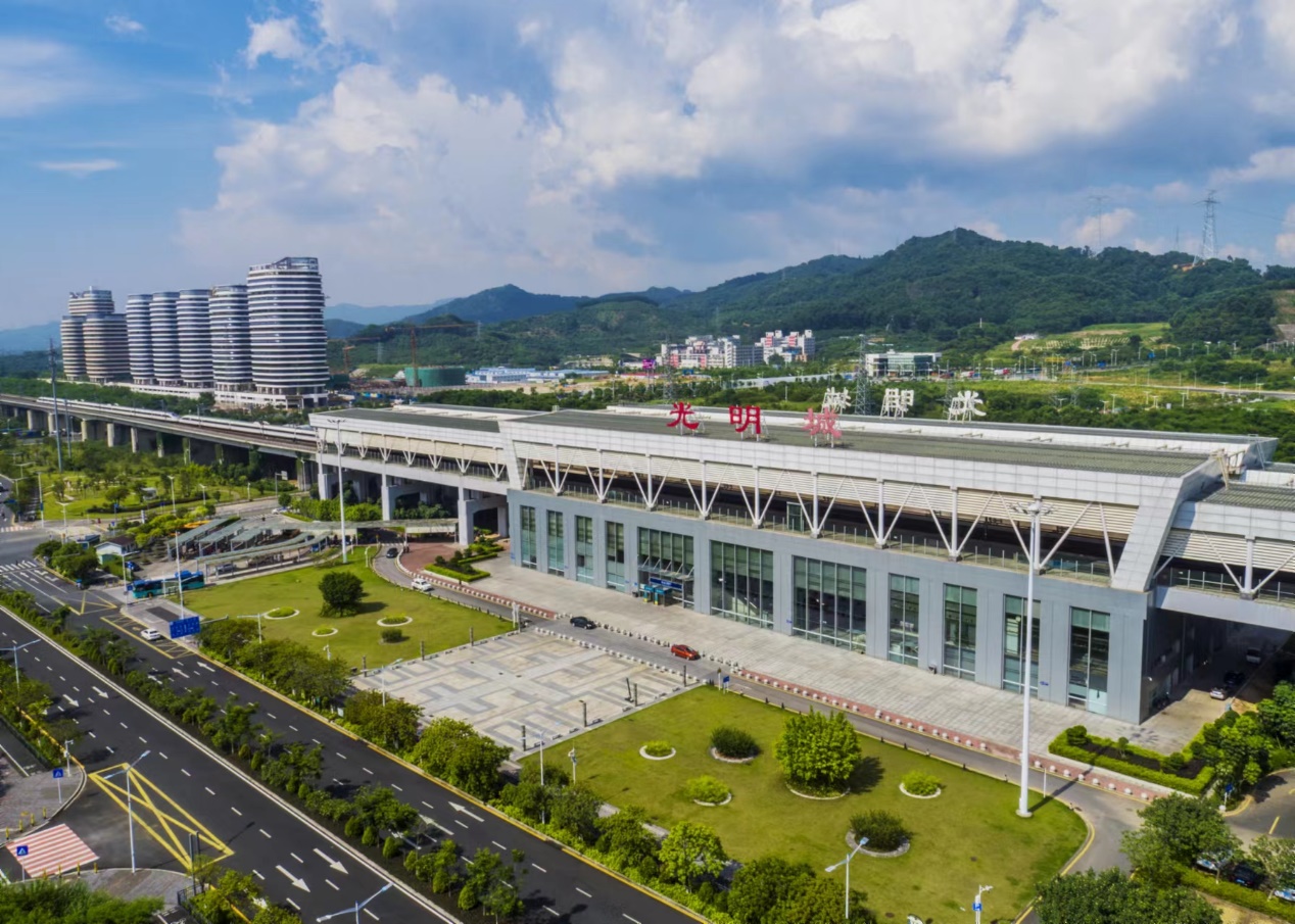 光明以高鐵樞紐、地鐵、高速為依託,連接香港、廣州、東莞等周邊城市,形成30分鐘大灣區核心城市交通圈。鳳凰街道是光明區唯一擁有高鐵、地鐵、軌道交通多線匯集的城區,廣深港高鐵、贛深高鐵穿城而過,高效通達大灣區各城市,「外聯暢達、內聯便捷」的樞紐地位無可代替。