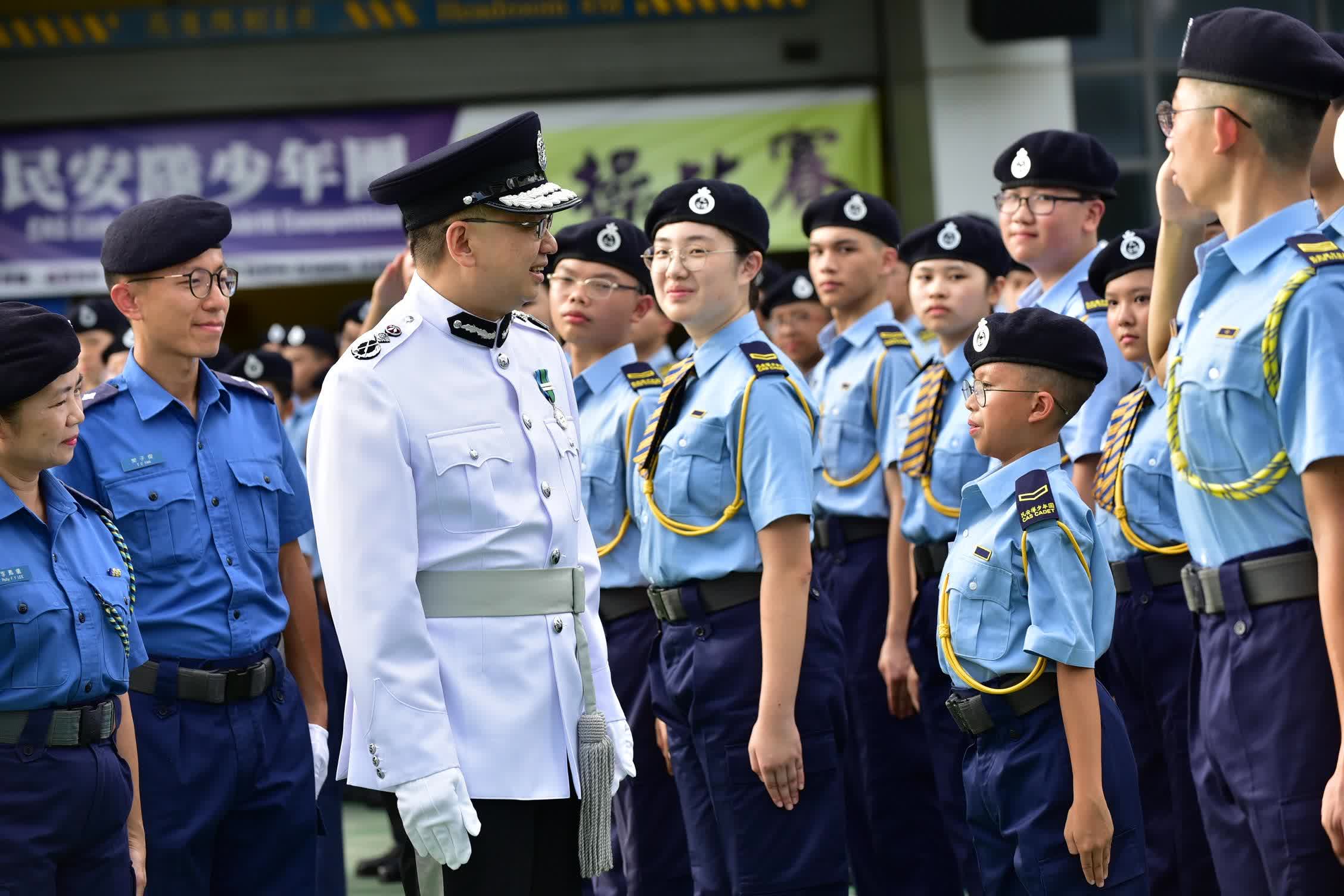今年共有10支隊伍,約210名少年團員參賽。主禮嘉賓署理入境事務處處長郭俊峯致辭時稱讚參賽者精神奕奕、英姿颯颯、步伐整齊,充分表現出多個月以來苦練的成果。此外,他亦衷心感謝民安隊成年隊員和少年團員付出寶貴私人時間貢獻社會。