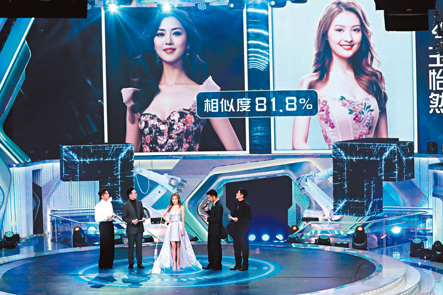 在「與未來自己對話」的環節中,16位候選佳麗與幾十年後、以AI生成的自己同台,不過生成的AI 畫面雖然創新破格,但亦有不少AI佳麗的五官跟佳麗非常相似。