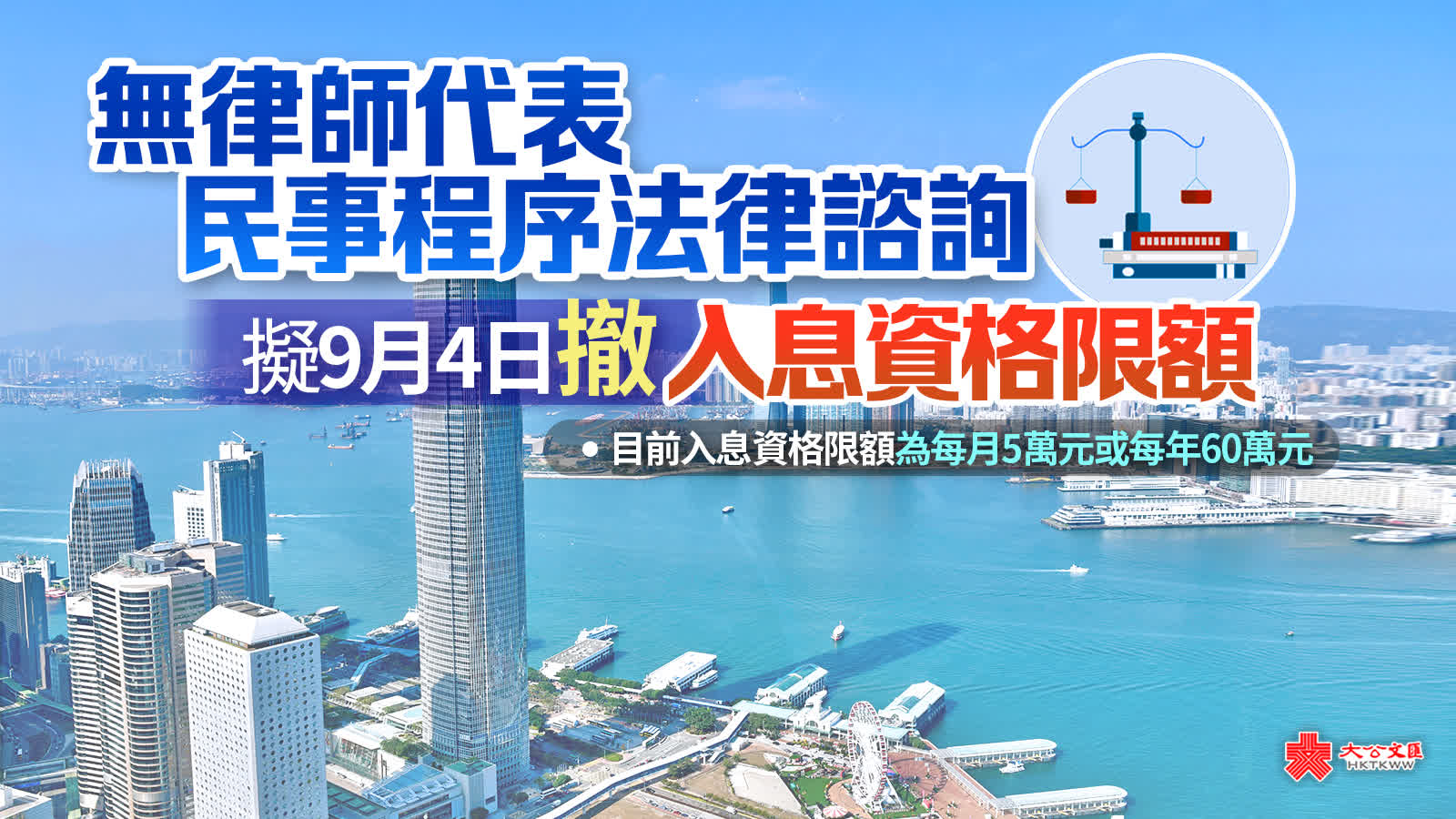 行政署發言人表示,為使更多有需要的市民得到服務,程序諮詢計劃將於下星期一(9月4日)起撤銷目前為每月5萬元或每年60萬元的入息資格限額。沒有聘請律師或未有獲得法律援助的無律師代表訴訟人,無需提供入息資料便可申請計劃服務,就其於土地審裁處、家事法庭、區域法院或以上級別法院進行的民事法律程序事宜(包括展開訴訟程序)尋求免費法律意見。