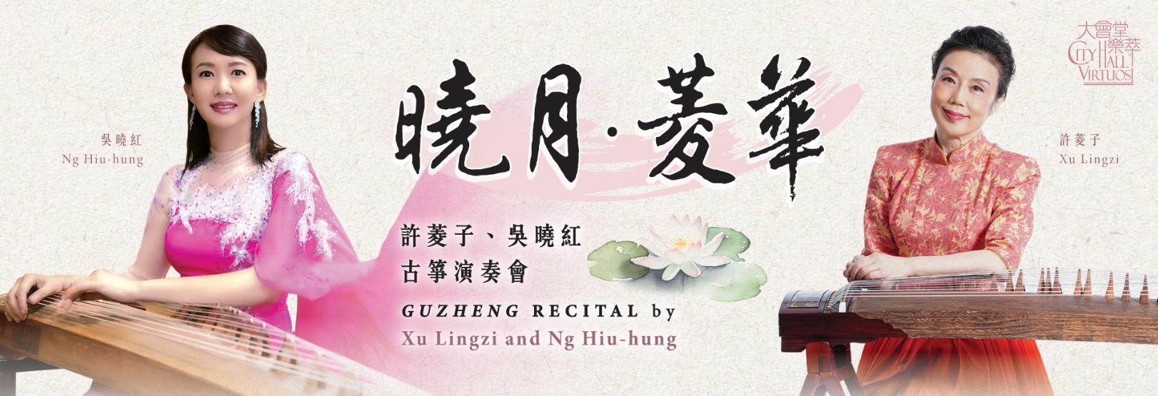 3位知名古箏演奏家將會在「大會堂樂萃」系列中呈現古箏豐富的表現力。許菱子和吳曉紅在「曉月·菱華」古箏演奏會中合演多首經典名曲和首演原創作品,展示精湛的琴技;而在「聲影墨色」古箏演奏會中,喜歡跨界創作的萬幸除會帶來經典箏曲外,亦會與多位樂手合作,將箏韻與洞簫、長笛、豎琴和電子音樂結合,為觀眾帶來一場風格新穎的演出。