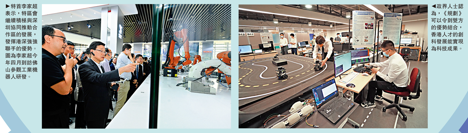 李家超表示,規劃為港深兩地在創科發展的合作注入了新動力,推上了新階梯。香港特區會繼續積極與深圳協同推動合作區在「一國兩制」下「一區兩園」的優勢,包括爭取落實促進各項創新要素跨境流動的措施,實現創科深度合作的橋頭堡,並讓香港充分發揮背靠祖國、聯通世界的獨特優勢,助力粵港澳大灣區國際科技創新中心的建設。