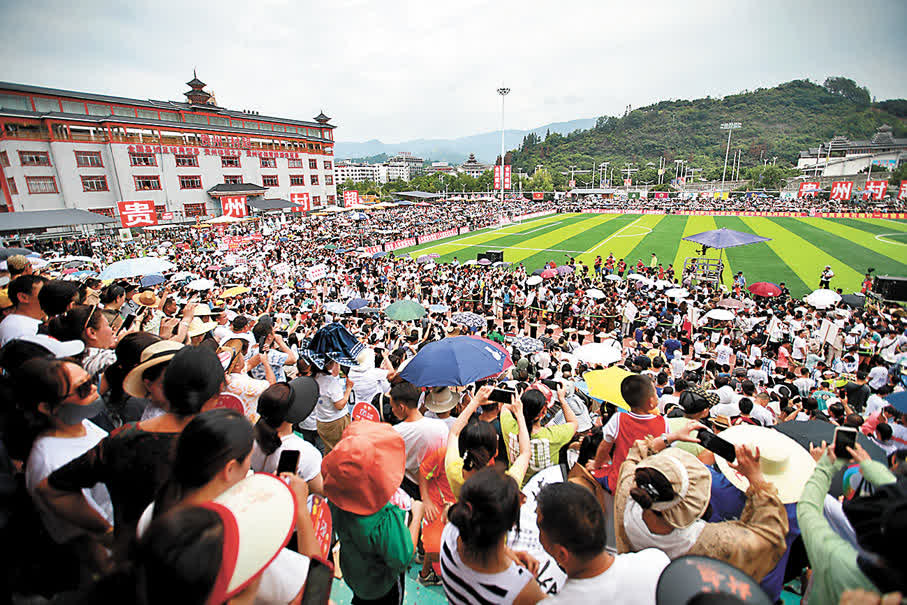 月中在貴州省黔東南苗族侗族自治州榕江縣城北新區田徑足球場,伴隨數萬觀眾的吶喊,香港明星隊與榕江村民隊攜手上演「揭幕戰」,意味着榕江足球的歷史掀開了嶄新一頁。榕江村民隊球員楊兵談起這場比賽依然很感慨:「70多歲的陳百祥、羅家英,60多歲的黃日華、何家勁……香港明星隊中有很多高齡球員,他們奮力踢球、頑強拚搏的精神,讓人欽佩!」