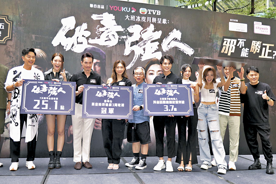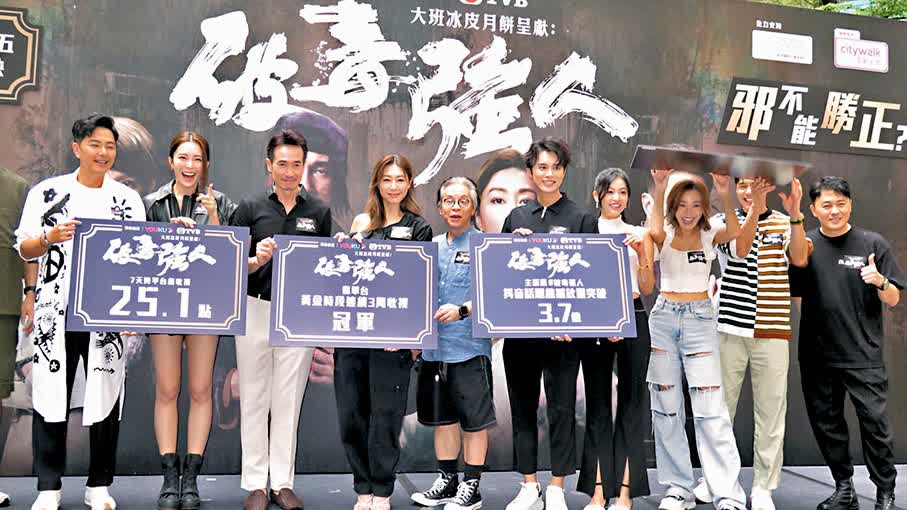 (香港文匯報 記者 阿祖)無綫劇集《破毒強人》昨日冒大雨於商場露天廣場搞宣傳活動,陳豪、胡定欣、蕭正楠、張曦雯、何廣沛及郭柏妍等上台公布劇集收視後,即下起大雨,結果要打傘繼續進行,現場亦有大班觀眾不理濕身照樣支持撐場。而劇集收視報捷,7天跨平台收視25.1,觀眾人數為161萬,是電視台黃金時段連續3周收視冠軍,社交平台總播放量更突破3.7億創佳績。