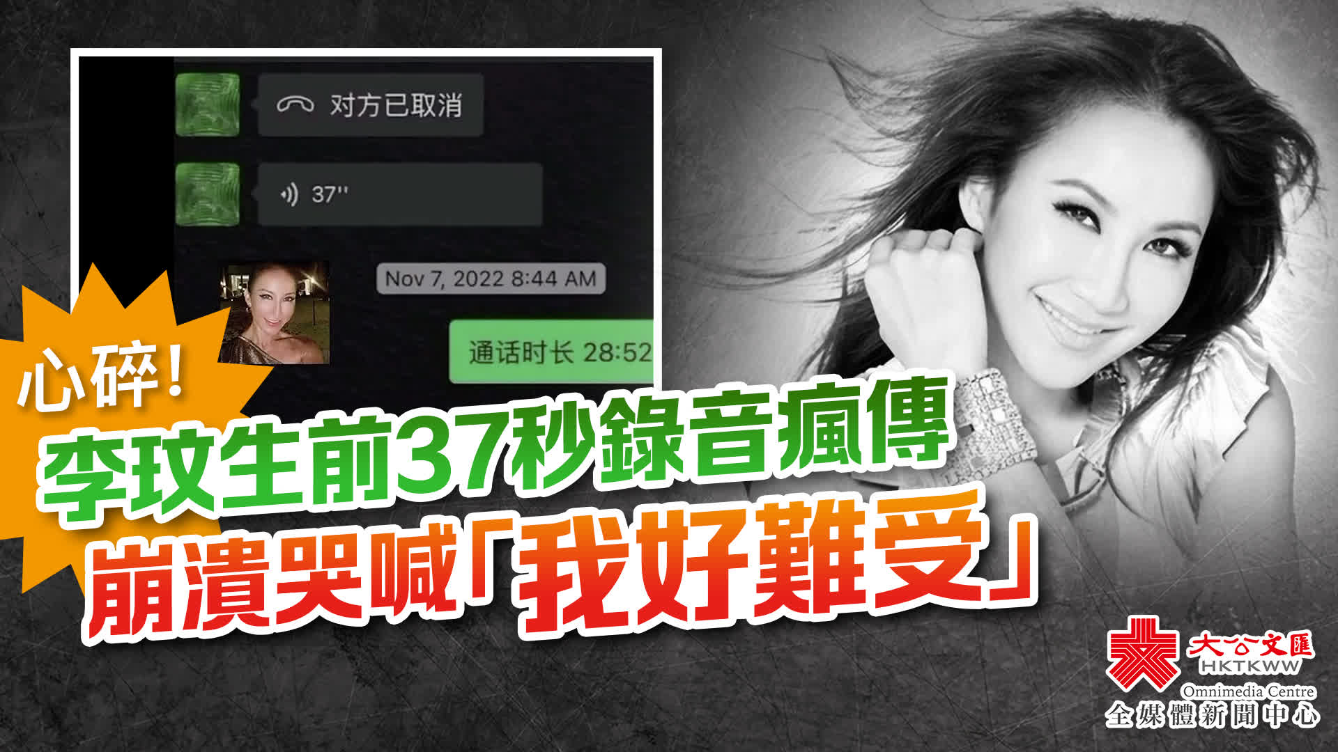 從錄音中可以聽到,李玟聲音沙啞,哽咽哭訴:「哈嘍,親愛的,如果你現在有空,我起來了,你可以打給我嗎?我的腿,我的腿好難受啊,不是跟你分享負面的東西哦,就是太難受,睡也不行,坐也不行,走也不行啊,現在好嚴重哦,反正你可有空打給我?」李玟在講述過程中,還崩潰大哭,可以感受到她承受極大壓力。
