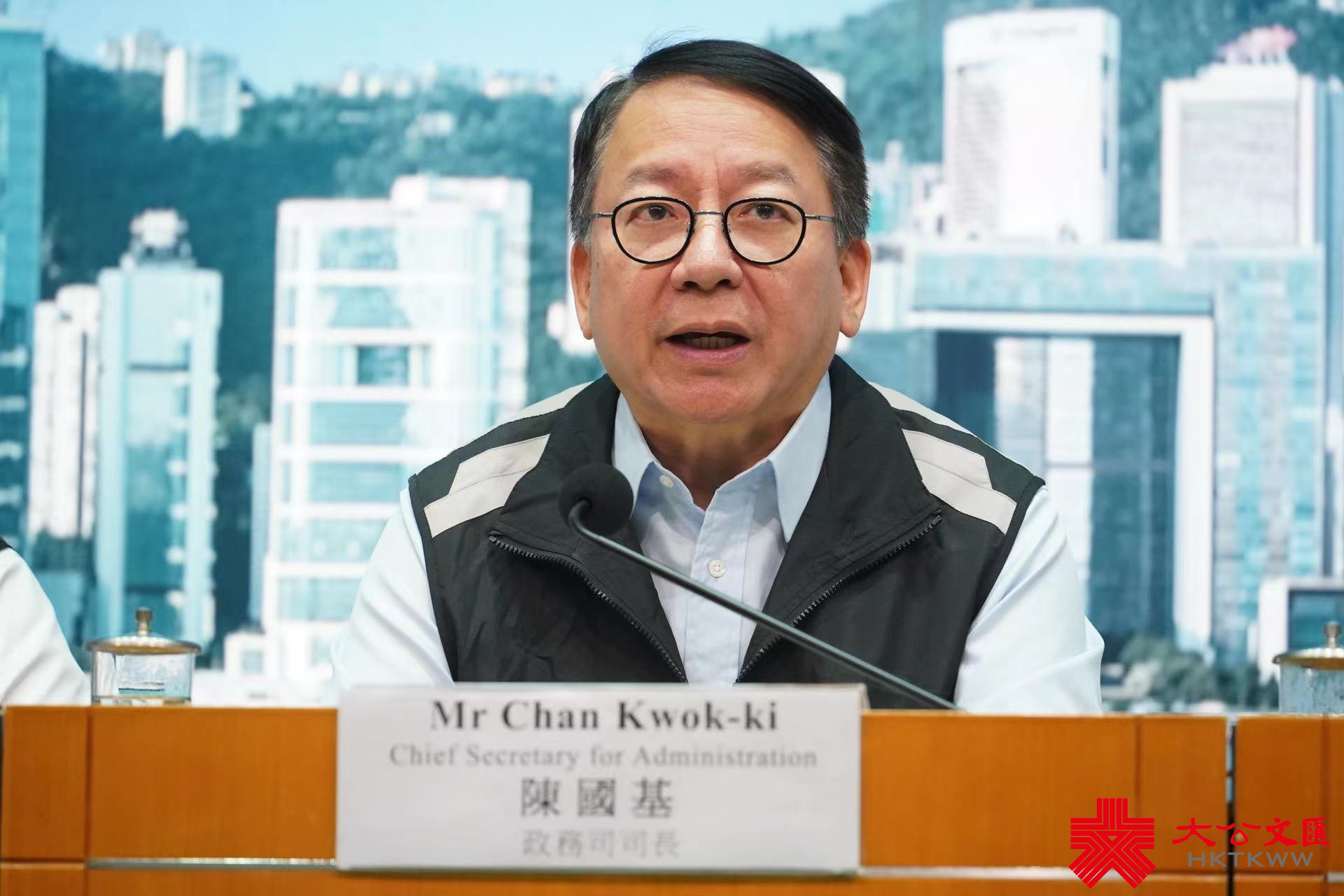 (大公文匯全媒體記者 王俊傑)超強颱風「蘇拉」逼近本港,政府今日(31日)舉行聯合記者會。政務司司長陳國基表示,已汲取上次「山竹」經驗作總動員,宣布應對措施,如提前公布懸掛八號風球的時間、執法和救援團隊配備工具、各部門預先準備人手等,相信應對情況會有所改善。