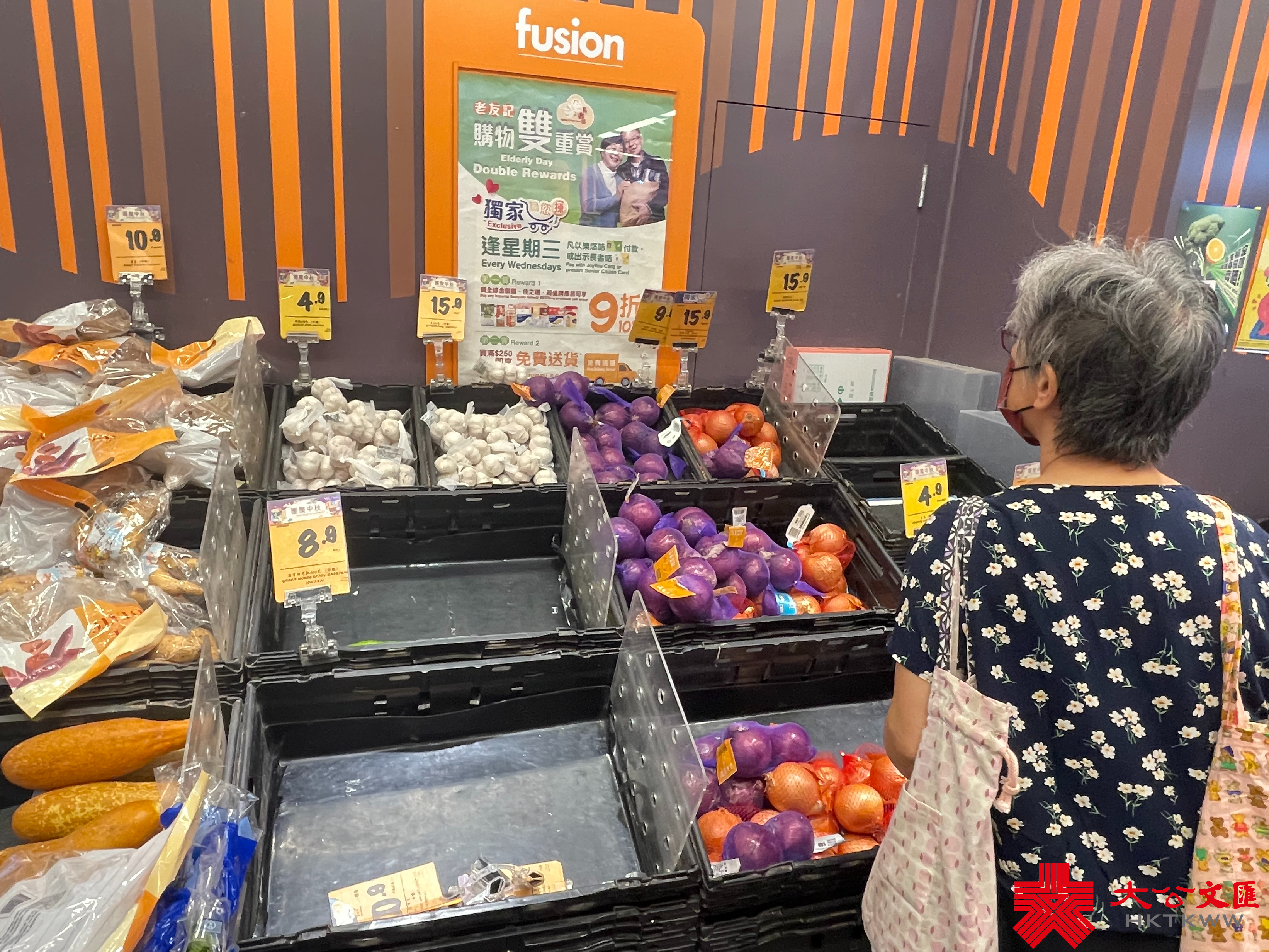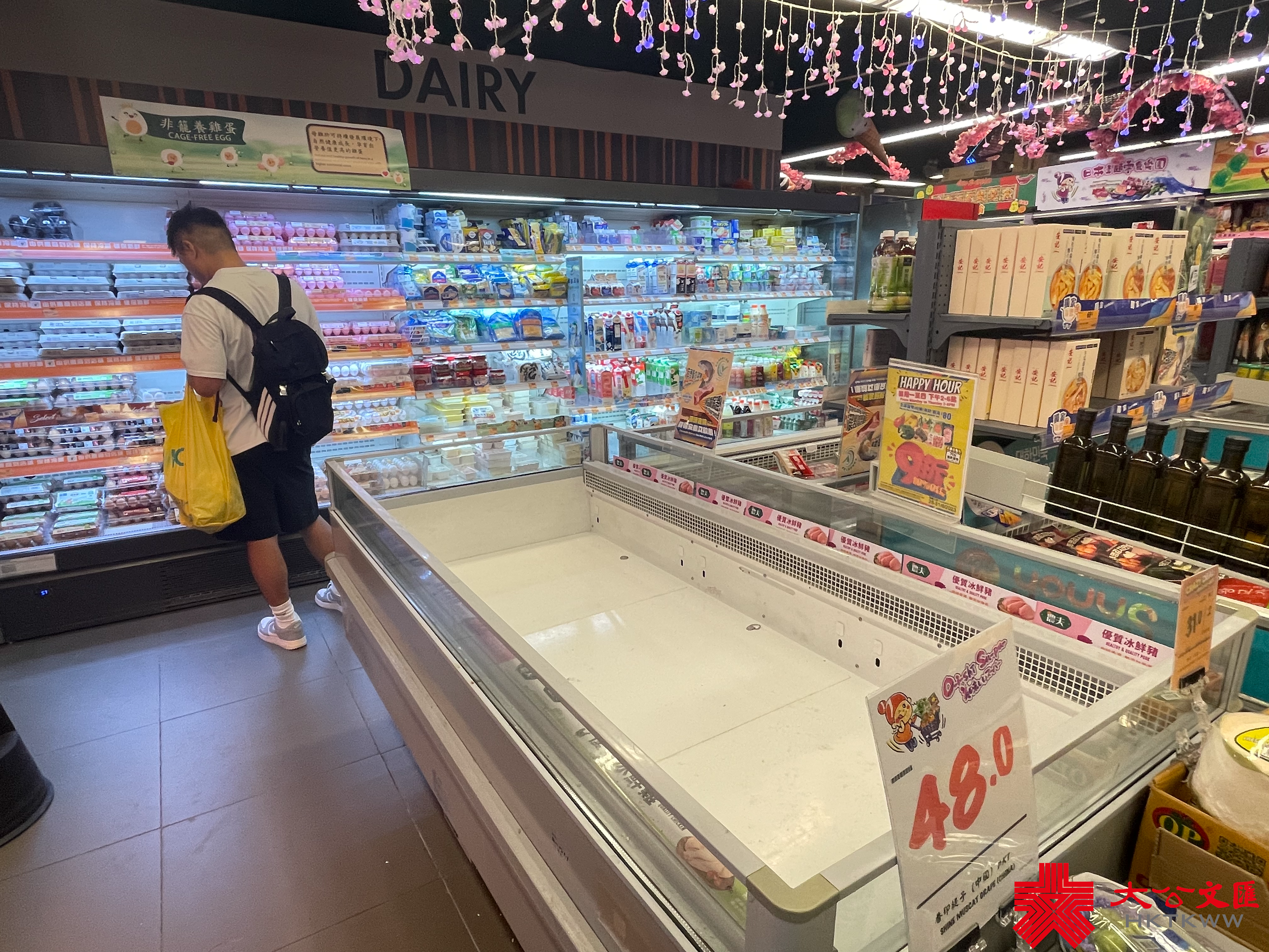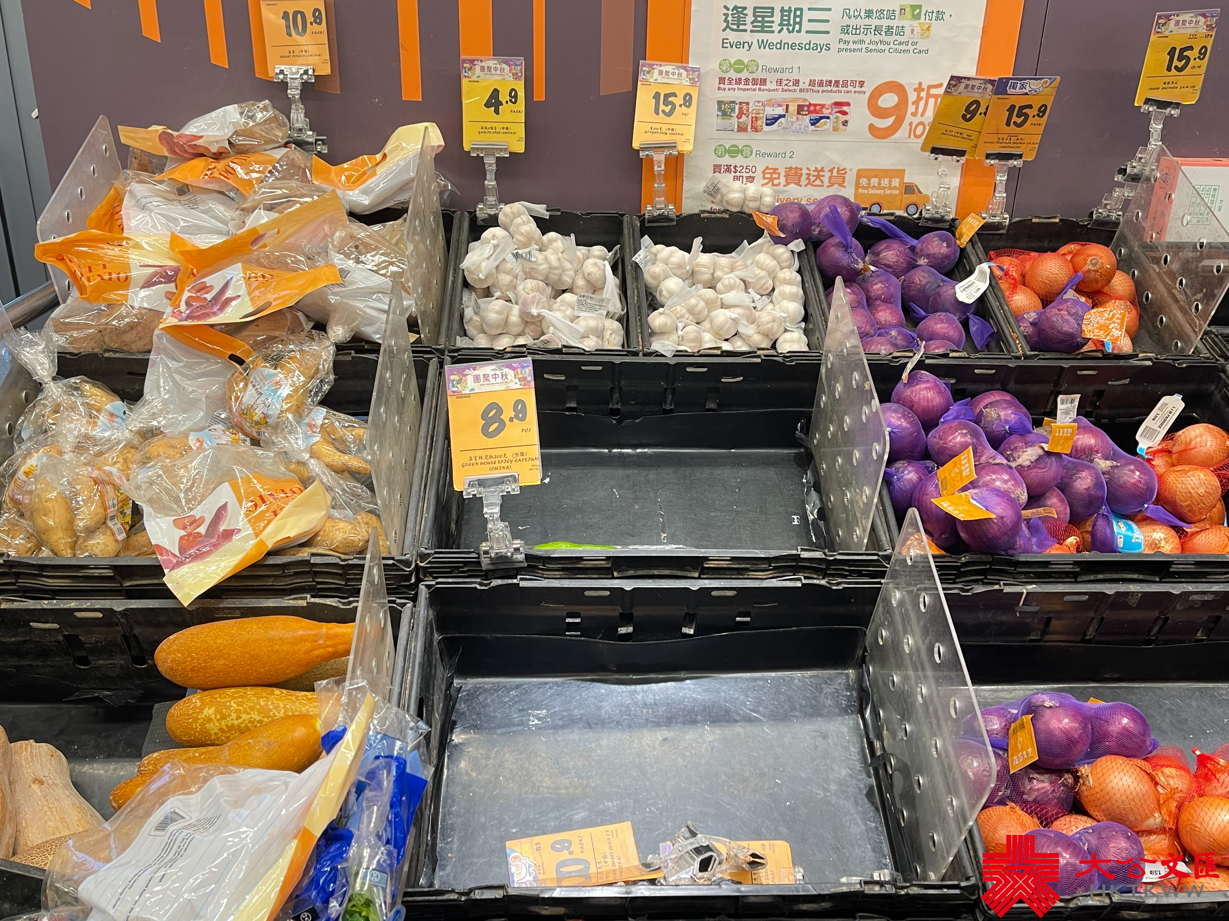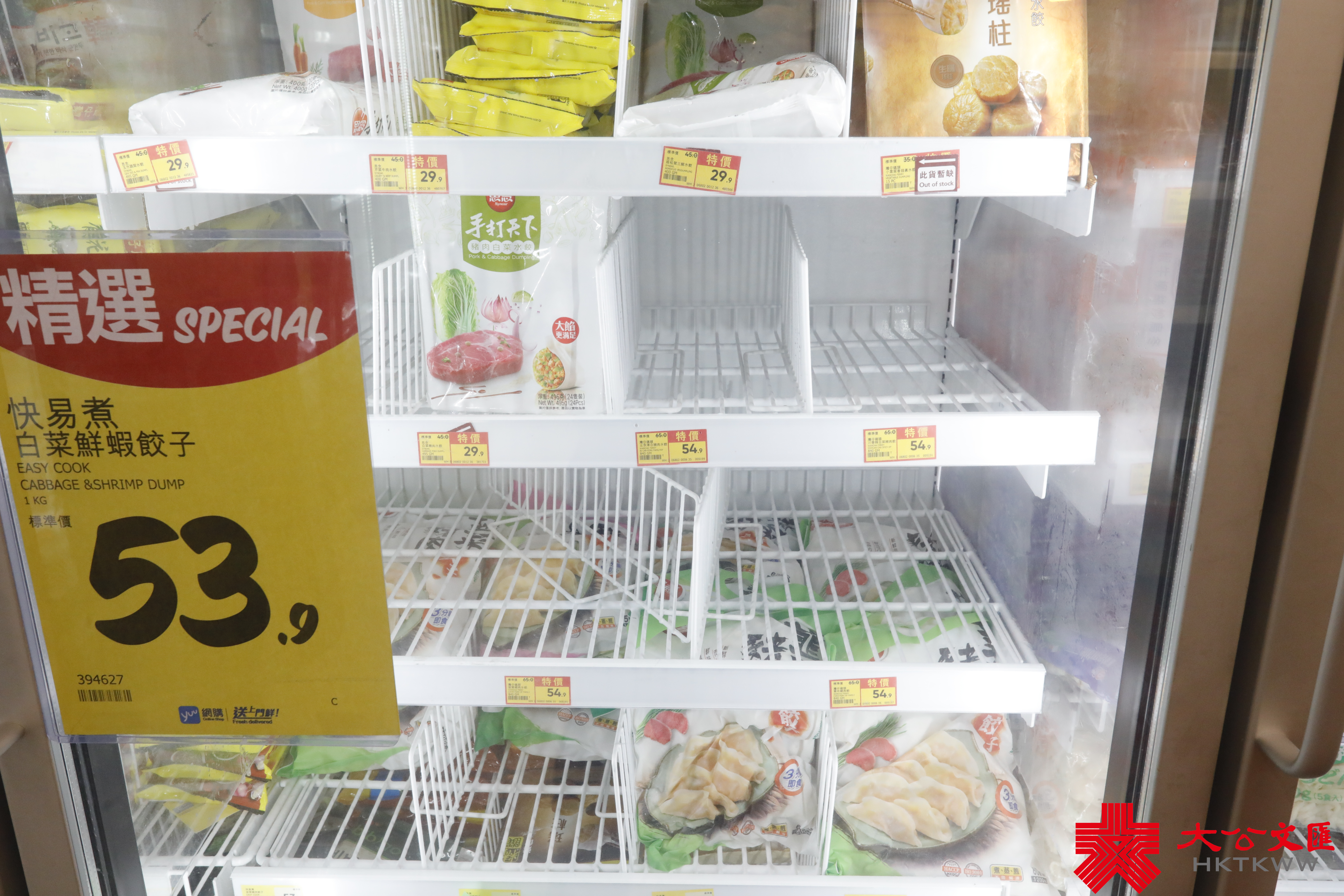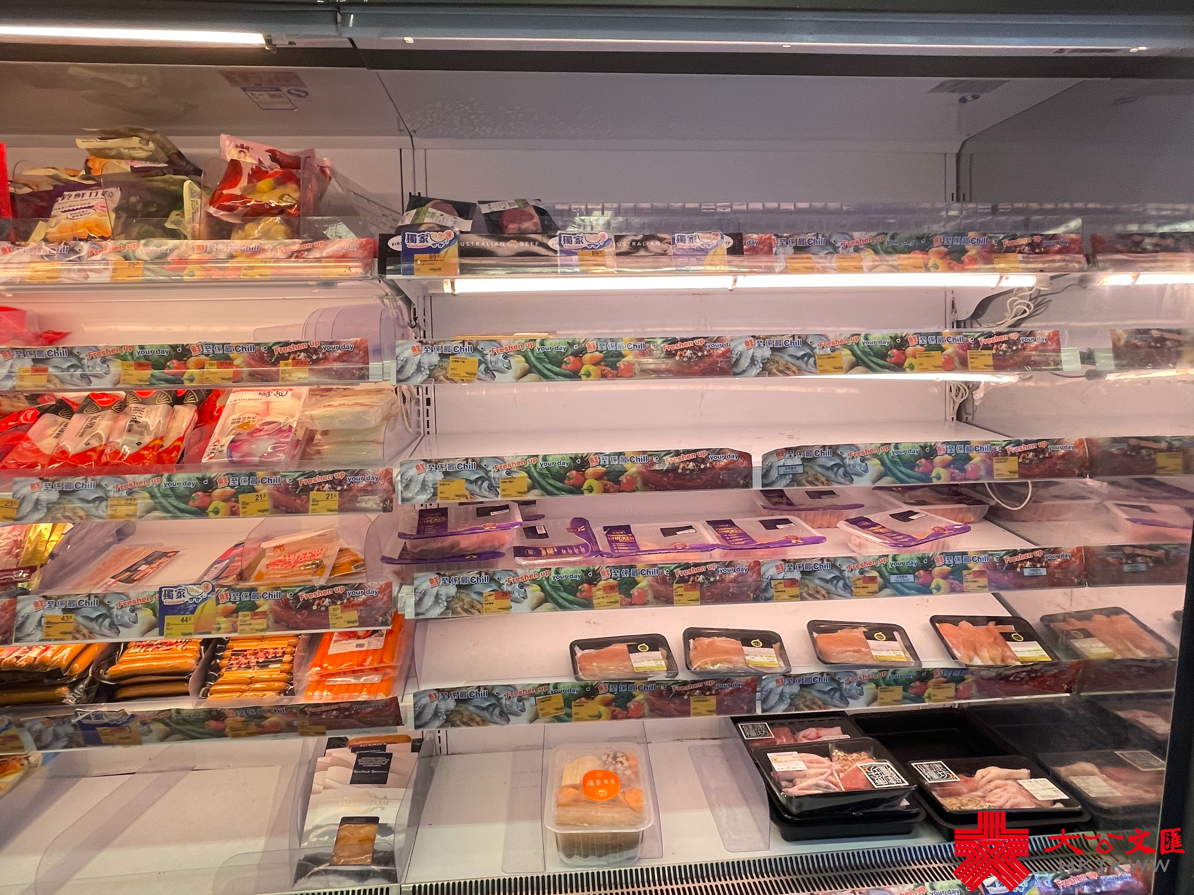 大公文匯全媒體報道,颱風蘇拉明日(9月1日)將會相當接近本港,對本港構成威脅。天文台宣布,會在明日凌晨2時至5時改發八號烈風或暴風信號。記者今日(8月31日)來到超市,發現新鮮蔬菜、肉類和蛋類最搶手。下午6時30分許,麵包貨架和冰鮮肉貨架已空空如也,蔬菜亦僅有少量供選擇,冷凍薄餅、即食麵等都是「市民優選」,排隊結賬的市民也需排長龍。