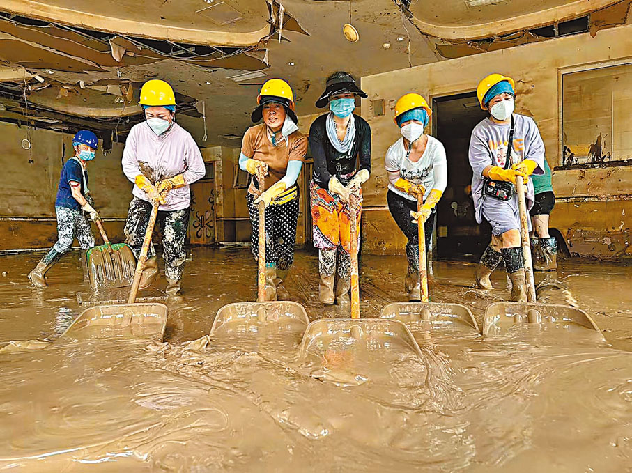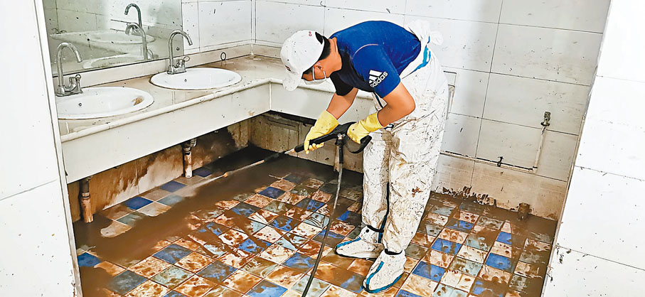 為了讓孩子們如期開學,孫常見從洪災以來就沒好好睡過覺。防洪、抗洪、排水、清淤、沖刷、消毒,孫常見和教職工們這一個月都以校為家,「太多的事情,忙得不可開交。」在救援隊、解放軍以及學生、家長們的共同努力下,淤泥終被清洗乾淨,校園恢復往日潔淨,「我們很多家長看到學校家屬群發有消息需要志願者清淤,立刻放下受災的家來到學校,很多學生也主動來到學校幫忙。」