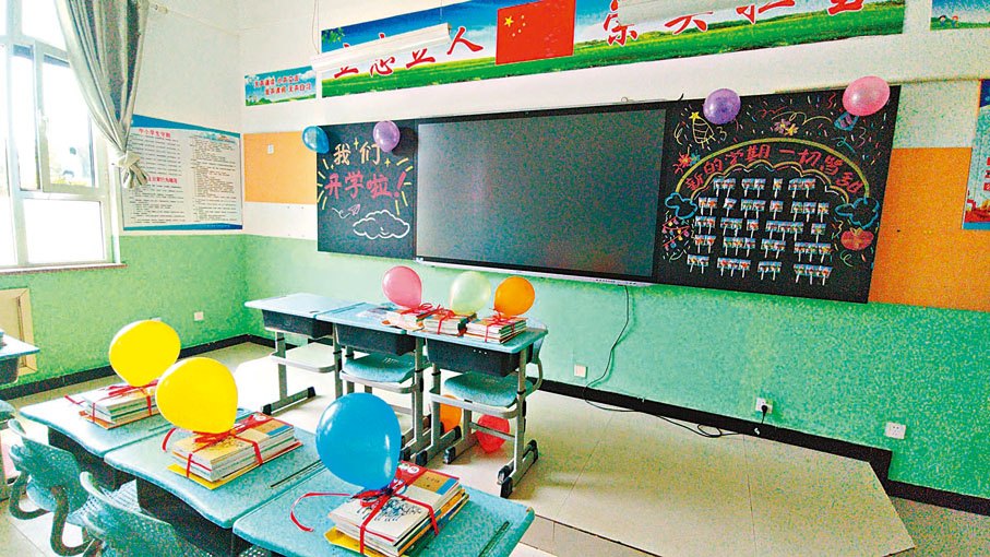 (香港文匯記者 馬曉芳 河北涿州報道)9月1日,河北涿州各學校新生在經過一個特別的暑假後,準時開啟新學年。昨日(8月31日),該市各級各類學校亦開始錯峰開學了。就在一個月前,京津冀地區遭遇歷史罕見的汛情。受此次洪澇災害影響,河北省受損中小學校、幼兒園1,150所,涿州是受災最為嚴重的地區之一。暴雨洪災過去整整一月,香港文匯報記者昨日走訪受災學校,發現洪災肆虐的痕跡幾近消除,只有外牆上淺淺的水痕,還在提醒着人們一個月前的驚心動魄。學校裏,新課桌、新課本、新氣象,師生們用彩色氣球、美味棒棒糖迎接新學期的到來。「抗洪精神,是我們今年開學第一課的重要內容。」校方希望學生歷經無情洪水,回到溫暖的校園,學懂感恩,樂於助人,不畏困難。