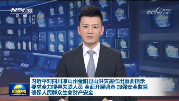 當天的《新聞聯播》頭條報道稱,中共中央總書記、國家主席、中央軍委主席習近平對四川涼山州金陽縣山洪災害作出重要指示。