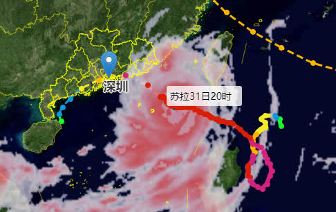 深圳市氣象台2023年09月01日06時00分將全市颱風黃色預警信號升級為橙色。「蘇拉」將正面襲擊深圳市,或在深圳市100公里範圍內移過。全市進入颱風緊急防禦狀態。