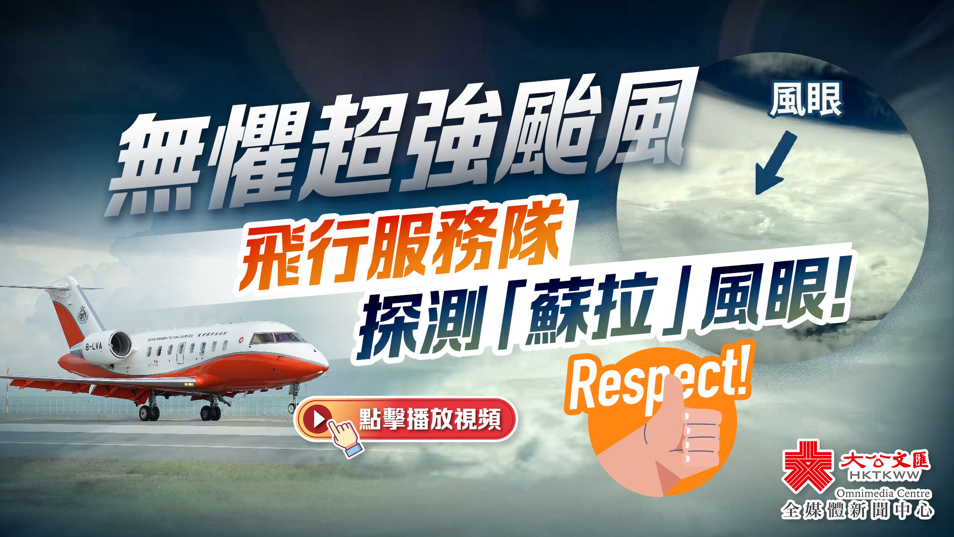大公文匯全媒體報道,保安局今日(9月1日)下午表示,為了帶給天文台和市民最準確的氣像資訊,政府飛行服務隊出動前往颱風中心,偵察超強颱風最新動向。從保安局發放的片段和照片可以看到,「蘇拉」結構緊密,風眼清晰可見。保安局表示,這些數據會即時傳送給天文台作進一步分析。