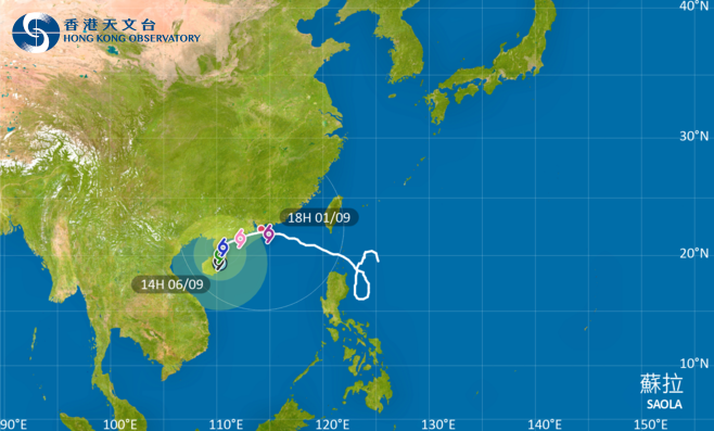 按照現時預測路徑,蘇拉會在午夜前後在香港天文台以南約40公里左右掠過,本港將由吹偏北風逐漸轉為吹東至東南風,原來受遮蔽的地方可能會變得當風,市民需保持高度警覺。天文台會視乎本地風力變化,評估是否需要發出十號颶風信號。