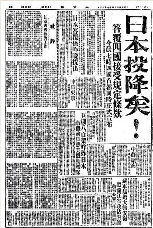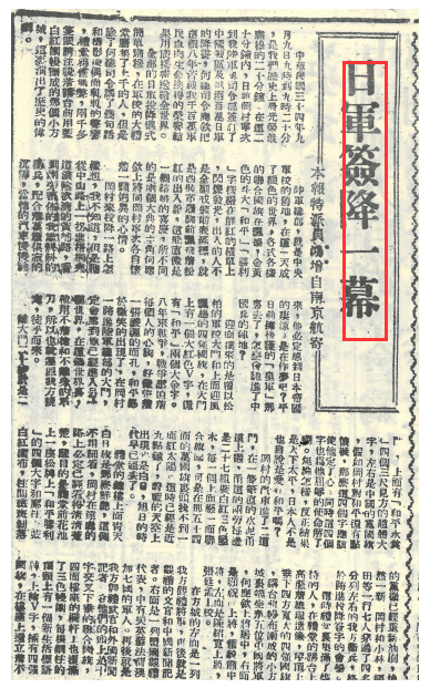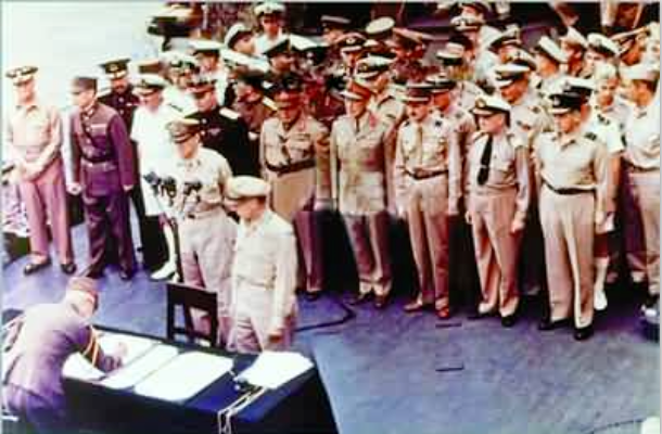 一九四五年九月二日上午九時十分,我在日本東京灣內美國超級戰艦「密蘇里」號上,離開日本簽降代表約兩三丈的地方,目睹他們代表日本簽字,向聯合國投降。