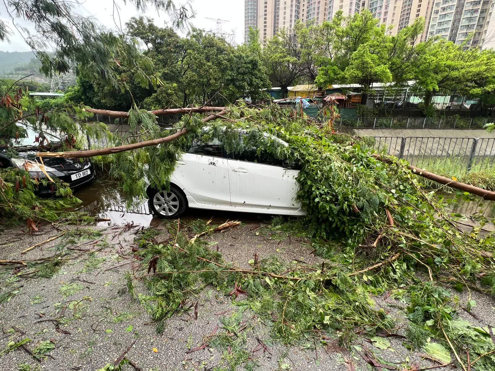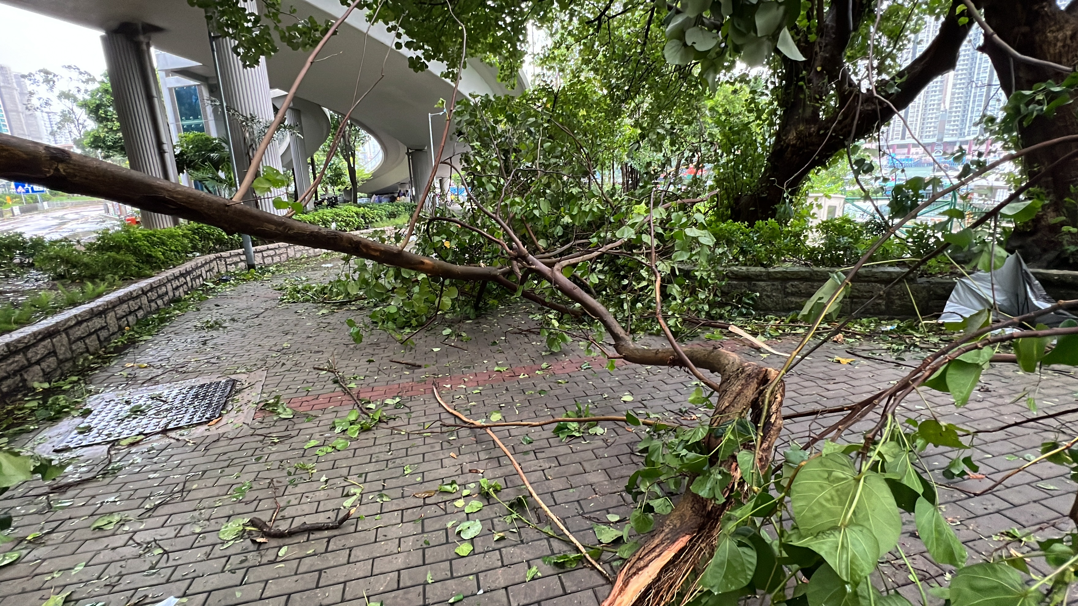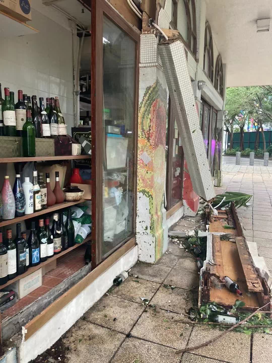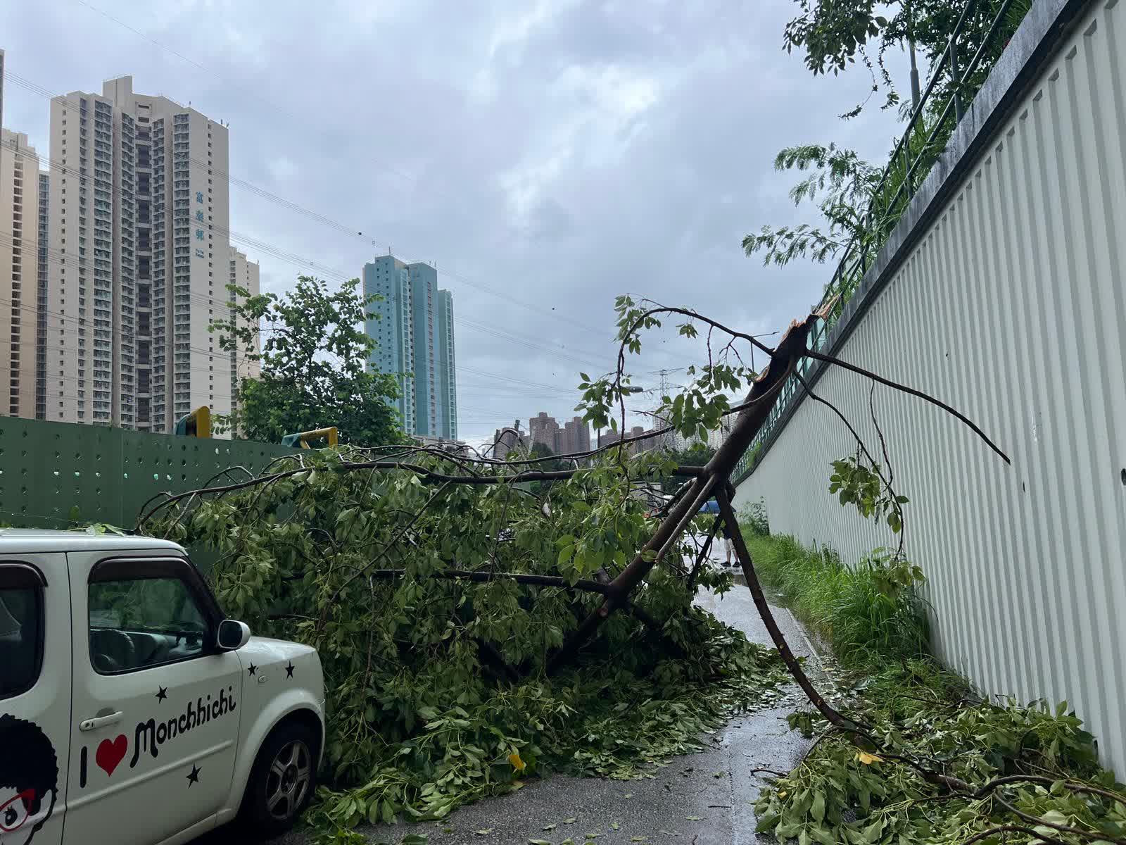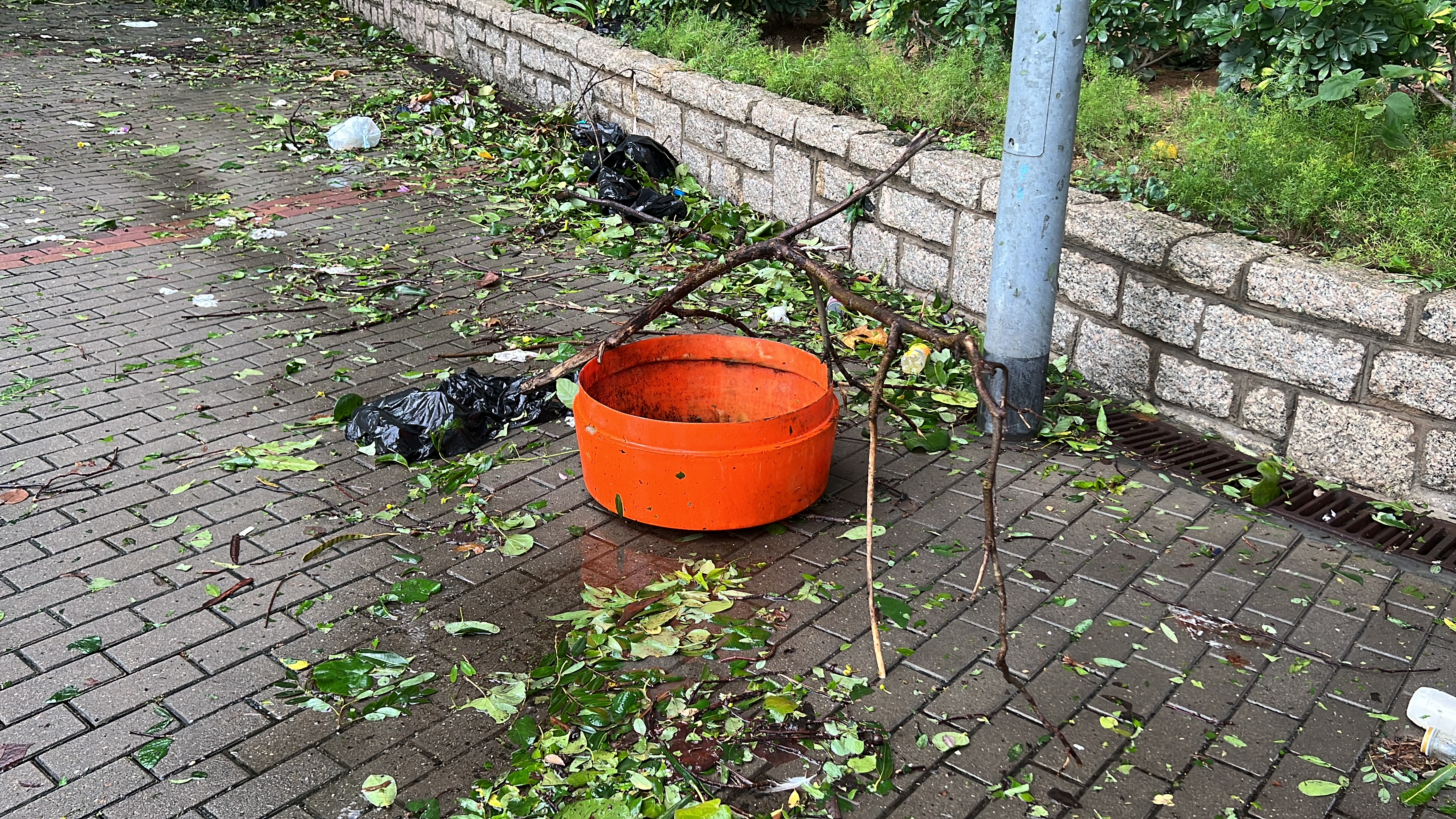 香港仔海旁感受到「蘇拉」的「辣手摧樹」之力,大量樹木被攔腰吹斷,一片狼藉。甚至有垃圾桶被吹至「身首異處」,行人皆需繞行。