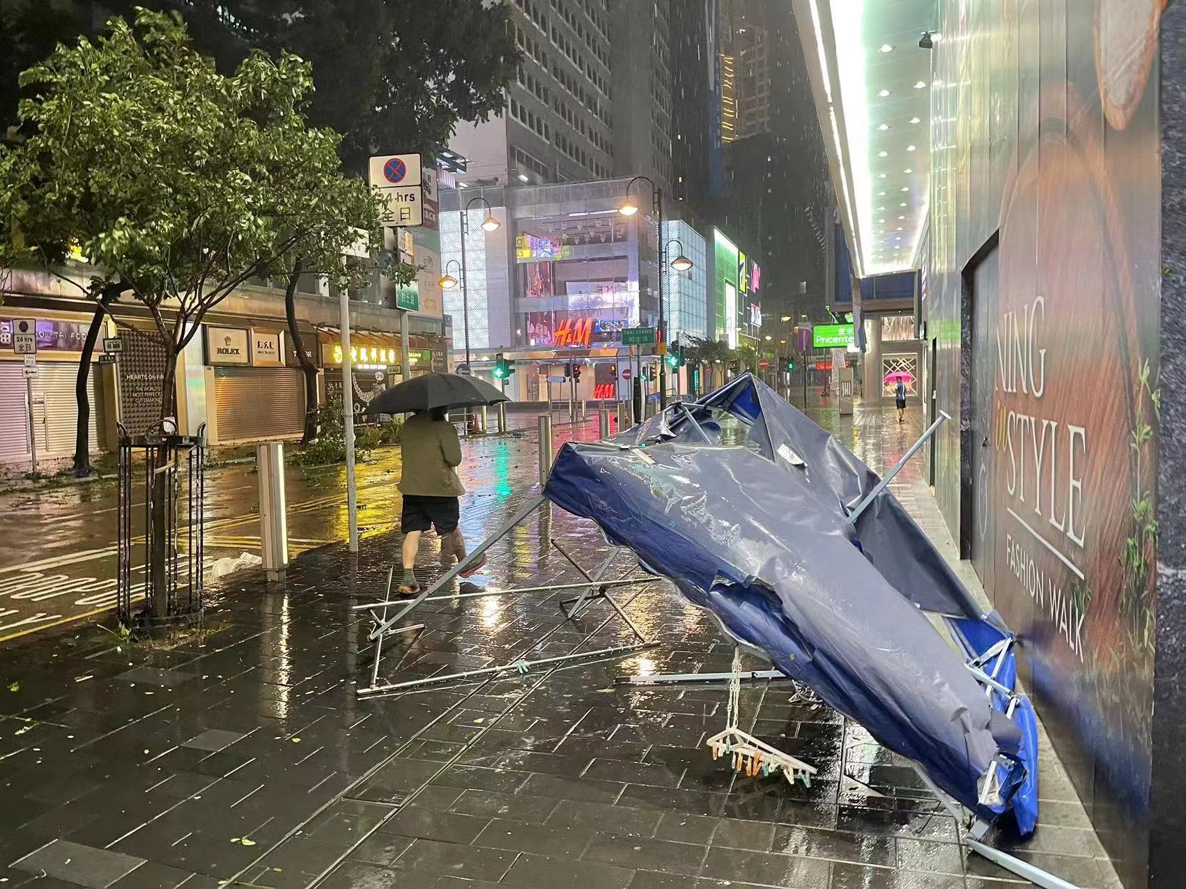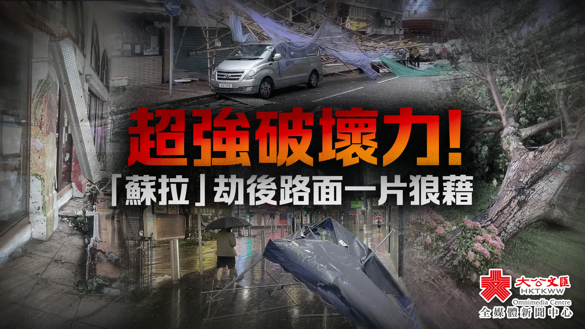大公文匯全媒體報道,八號東南烈風或暴風信號現正生效,「蘇拉」已減弱為颱風,繼續遠離本港,但本港多處仍受烈風影響,「蘇拉」的雨帶仍為本港帶來狂風大驟雨。