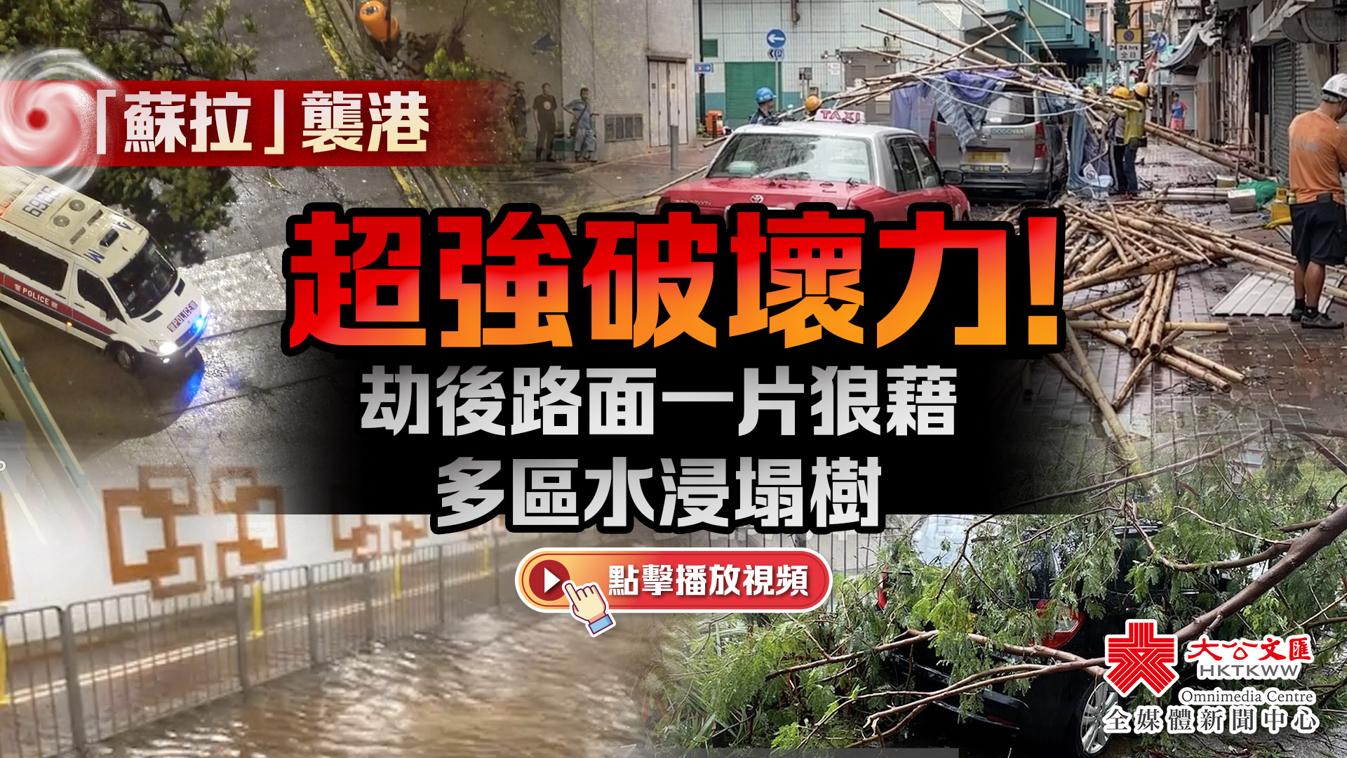 超強颱風「蘇拉」9月1日襲港,天文台昨日(1日)晚8時15分發出10號颶風信號,持續生效至周六(9月2日)凌晨,共維持7小時25分。颱風正面吹襲本港期間,全港迎來橫風橫雨,多區水浸塌樹、棚架倒塌。