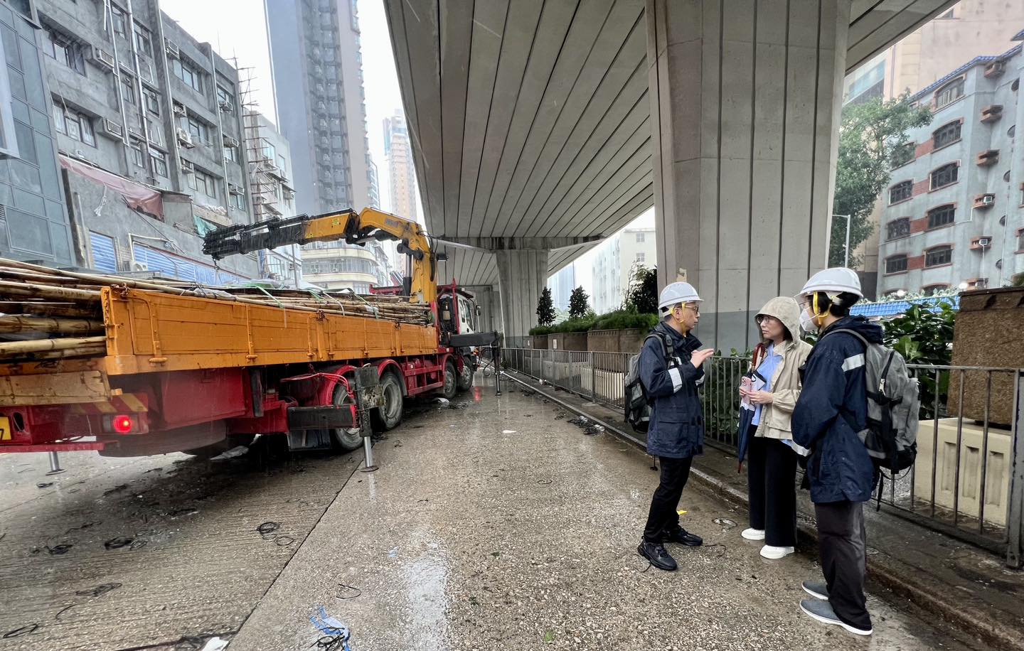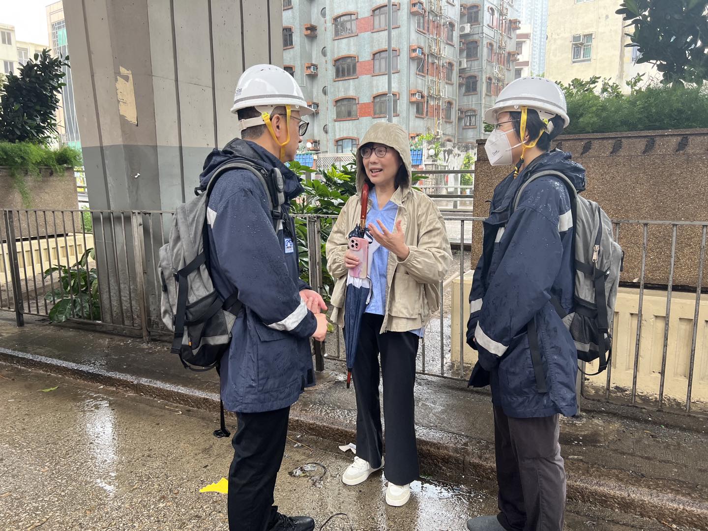 發展局局長甯漢豪今日(2日)早上視察了多個地點,了解有關部門的部署,並為同事打氣。屋宇署在天文台改發三號強風信號後,隨即展開大規模行動,巡視各區主要街道,以辨識鬆脫招牌、棚架 、窗戶、或受損毀建築物所帶來的安全隱患。如樓宇業主無法即時跟進潛在危險個案,部門會安排政府承建商即時處理。此外,屋宇署亦會巡查私人建築地盤,並提醒註冊承建商及註冊建築專業人士檢查棚架及其他設施。