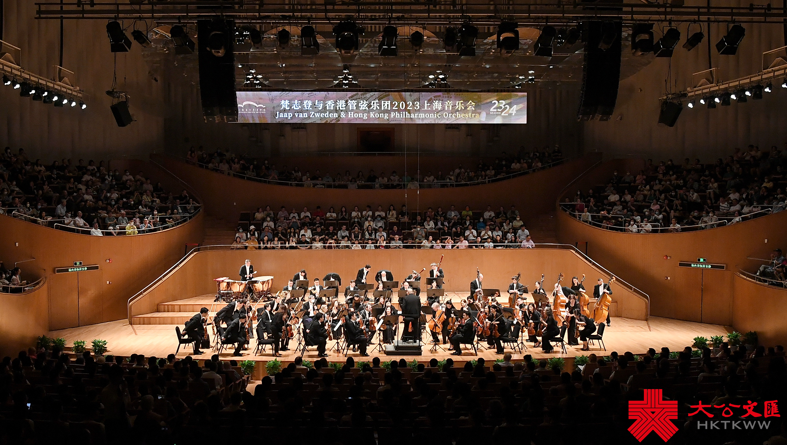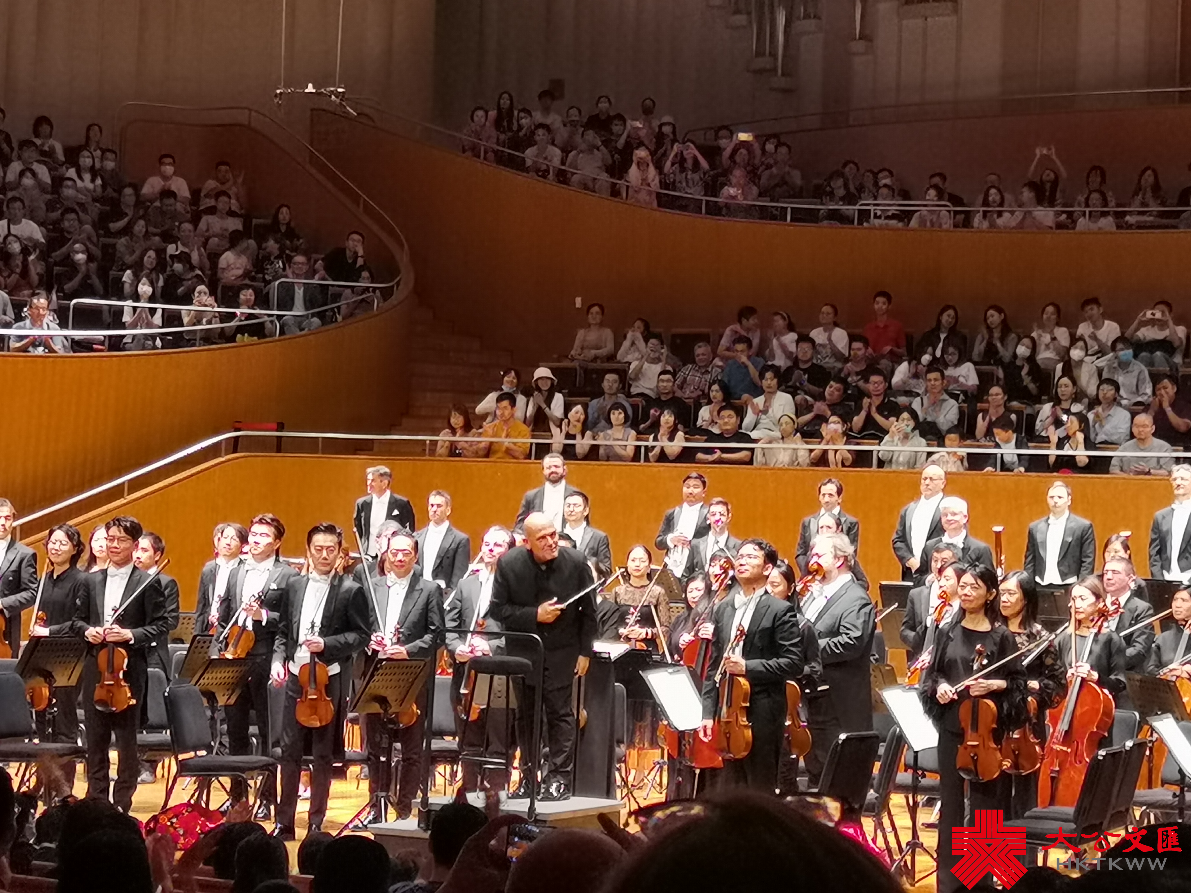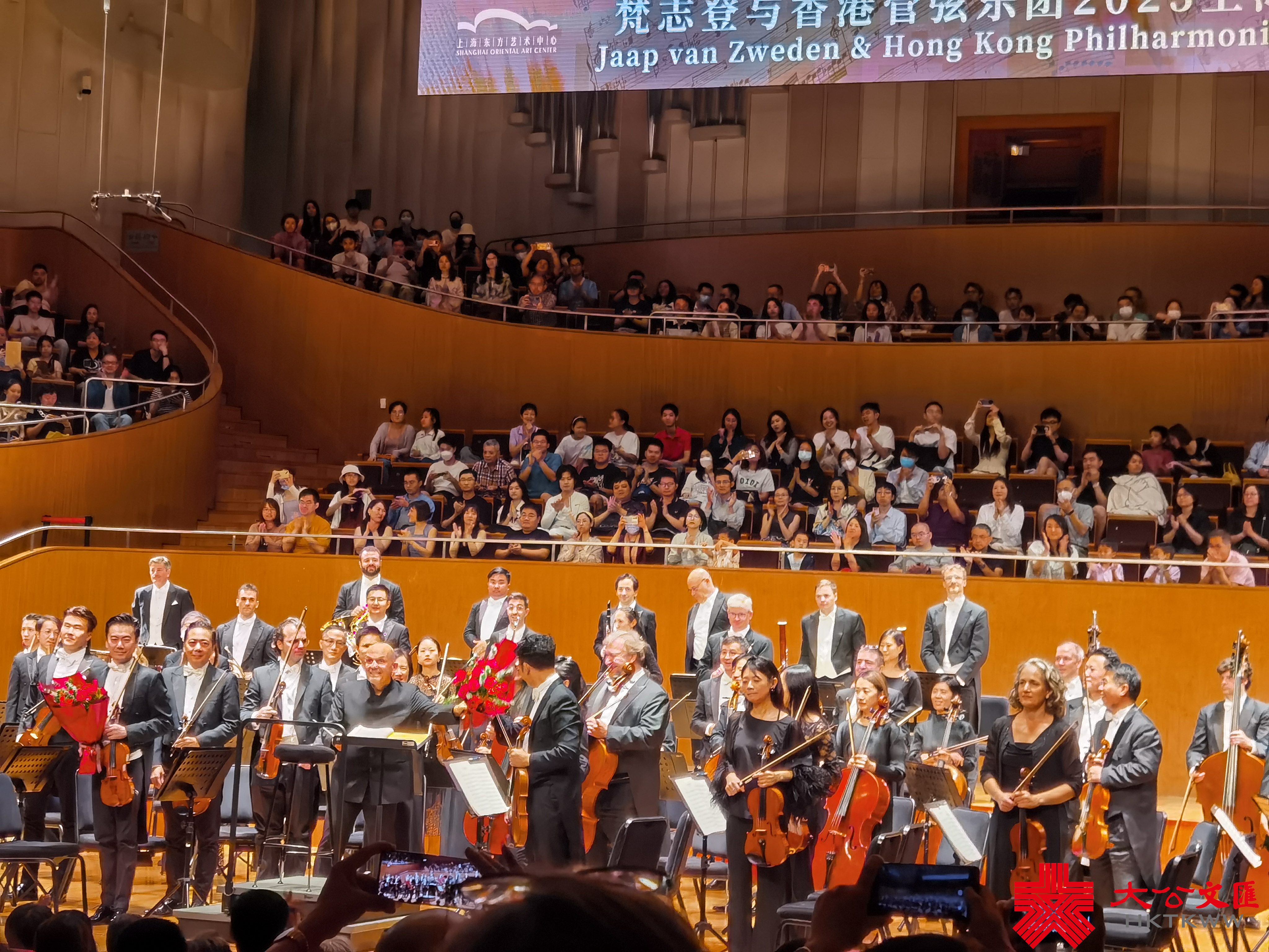 記者在現場看到,在上海東方藝術中心上演的演出幾乎座無虛席。享譽世界的指揮家梵志登攜手香港管弦樂團,剛一出場就贏得樂迷陣陣掌聲。這也是梵志登擔任香港管弦樂團音樂總監的最後一季。演出開場由香港管弦樂團市場推廣總監胡銘堯主持。他特別介紹,梵志登大師在不久前腿腳受傷,但仍然不願意讓樂迷失望,所以此行特別採用坐立的方式指揮。