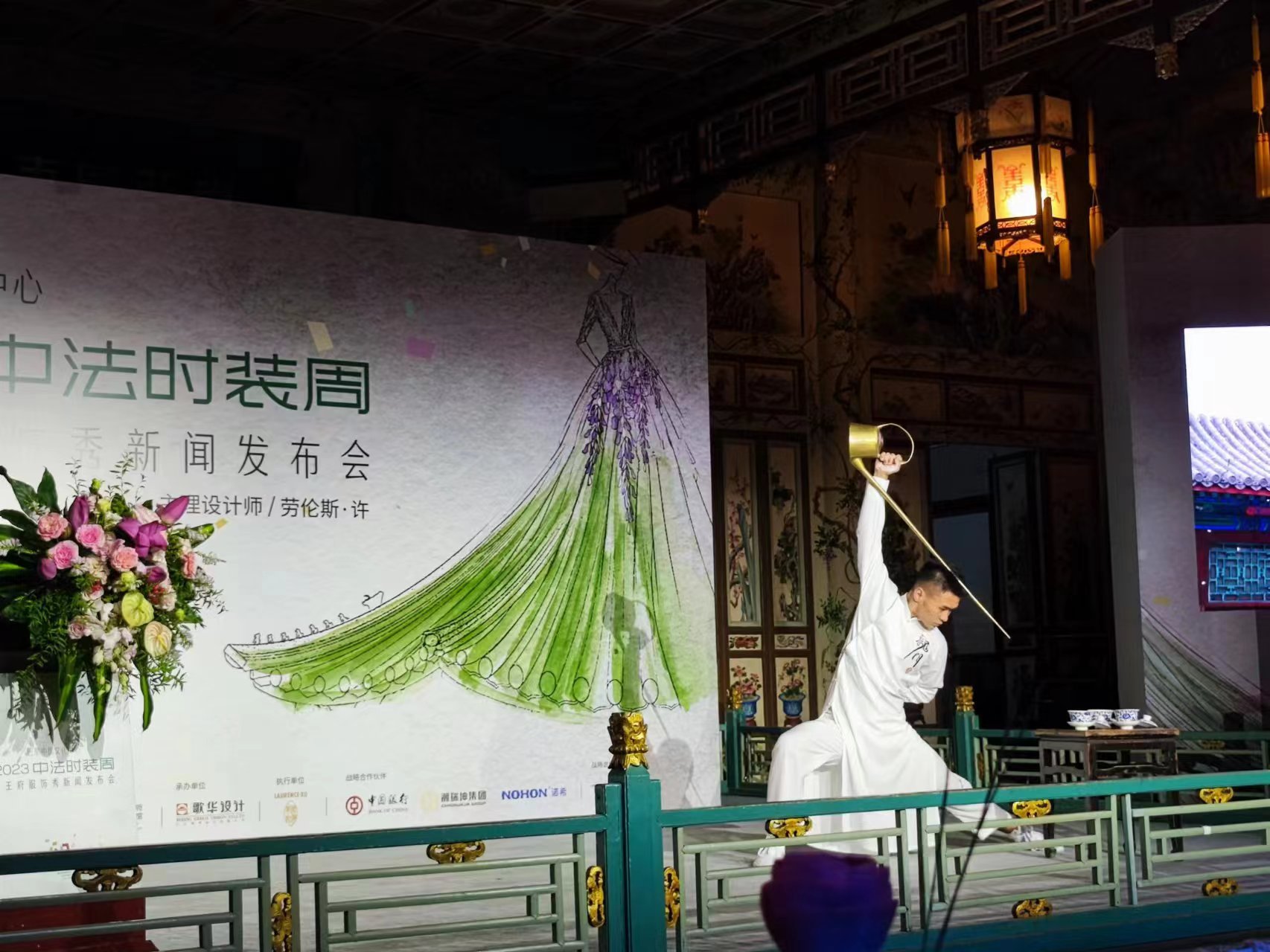 巴黎中國文化中心主任劉紅革通過視頻形式進行致辭,「巴黎中國文化中心為做好中法建交60周年慶祝活動和中法文化旅遊年系列活動,促進中法服裝創意領域的合作,將打造「中法時裝周」品牌,為中國設計師構建新的發布引擎。恭王府承載着獨特的中國古代流行文化元素,是中國優秀傳統文化的時尚代言,此次攜手恭王府博物館舉辦「中法時裝周恭王府服飾秀」,將開啟一場中法時尚潮流對話,讓法國觀眾欣賞到中國傳統文化與時尚精神有機融合的藝術佳作,也為兩國文化和創意產業開闢新的空間,孵化更多文化合作務實成果。」