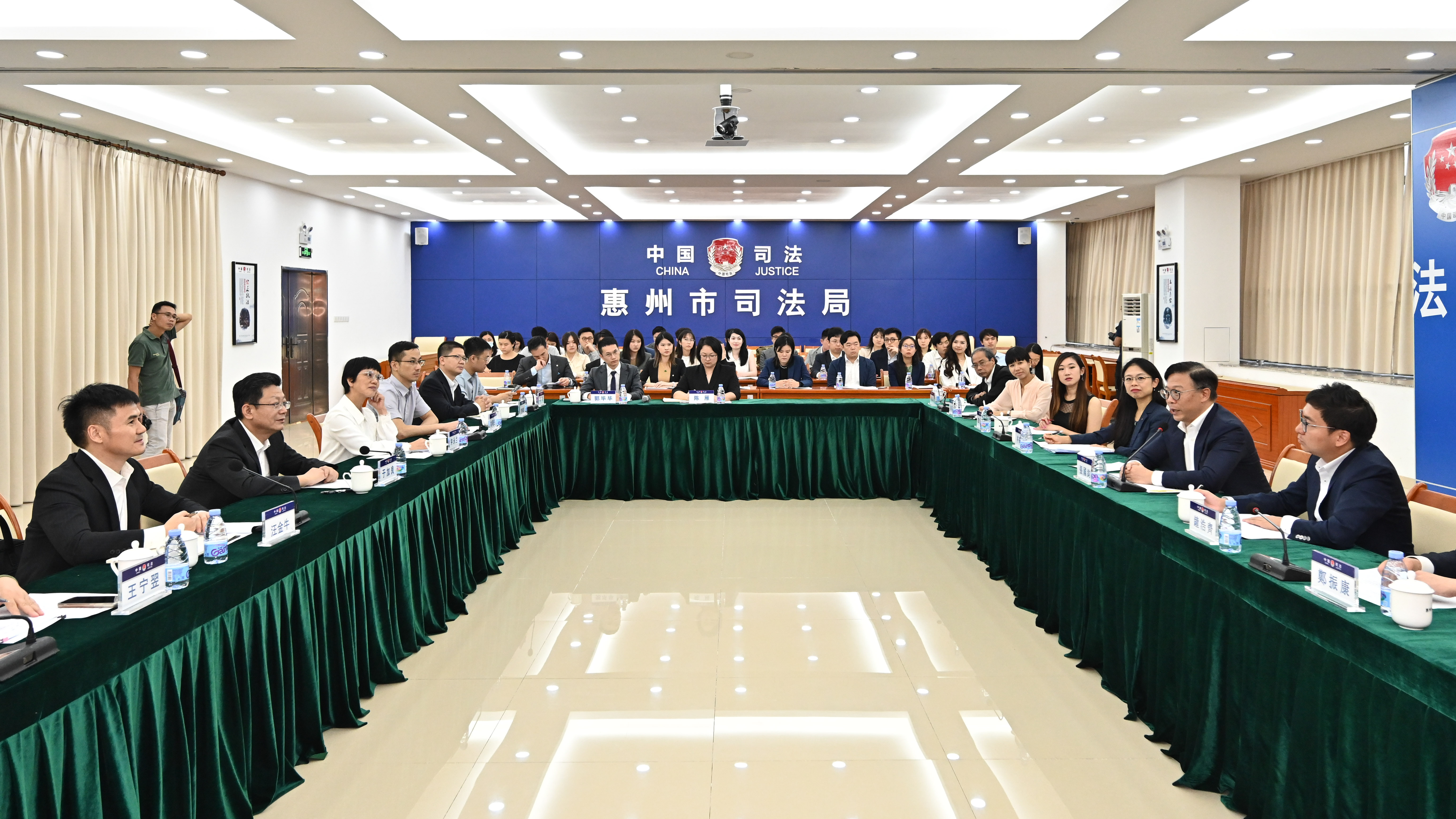 下午,代表團拜會惠州市人民政府,在惠州市公共法律服務中心與惠州市人民政府副市長于加良、惠州市司法局及惠州市律師協會代表等會面,了解惠州市推進大灣區建設及最新的發展。雙方並就香港法律業界在惠州開展業務、兩地民商事判決相互執行、公司破產或債務重組相互協助、商事仲裁、知識產權保護等領域加強合作交換意見。