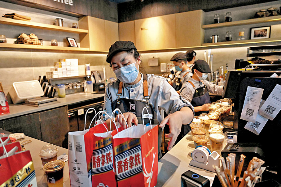 當香港文匯報記者在活動期間的中午打開瑞幸官方App準備點單嘗鮮「醬香拿鐵」時,卻顯示周邊所有門店有關產品都已售罄。「第一天官宣的時候很多人還不知道,第二天肯定人氣更高啊,都已經要搶了,你中午才買肯定是搶不到的。」咖啡愛好者毛先生這樣向記者傳授搶購經驗。他笑言,咖啡已經成為了自己的日常必備,所以在瑞幸和茅台「官宣」的第一天,已經搶購了一杯新品嘗鮮,「味道確實能喝出白酒味,但說實話我沒覺得好喝,而且我第一天從下單到拿到手,等了近3個半小時,如果還這樣等下去,我寧願不喝了。」