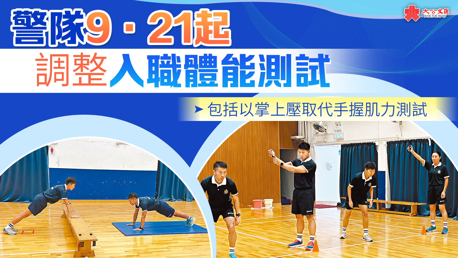 (香港文匯報 記者 李芷珊)警察招募活動近年成效顯著,為吸引更多有志投身警隊的大學生和年輕人,以及統一入職和受訓期間的體能標準,香港警務處將由9月21日起修訂兩項入職體能測試,包括以掌上壓取代現有的手握肌力測試,以及將4乘10米穿梭跑的手部觸線要求,改為用腳觸線。人事部招募組警司陳杰峰解釋,是次調整可便利更多有志服務社會的人士加入警隊,但他強調學院從未降低招生標準,投考難度或比以往增加,未達標準學員不能從學堂畢業。另外,警方本月至下個月將展開新一輪香港本地和內地的「大學招募快線」,冀吸納更多大學生投考警察。