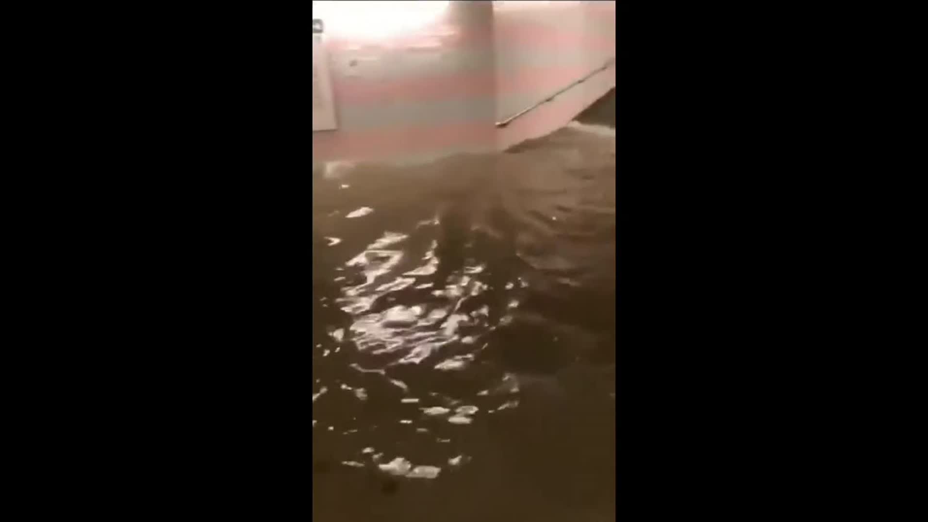 從網上影片可見,事發地點相信是彩虹站的C出口因接連行人隧道,大量雨水經地面沿樓梯湧進隧道及彩虹站內,3名港鐵職員合力嘗試關上出口的鐵閘,其間有人不斷傳出吃力的叫聲﹕「快啲呀!」,但閘門估計因水壓的關係,難以被拉開,職員只能一點點拖出閘門。片段結束時,兩扇閘門其中一扇成功拉開,另一扇只拉了三分之一。