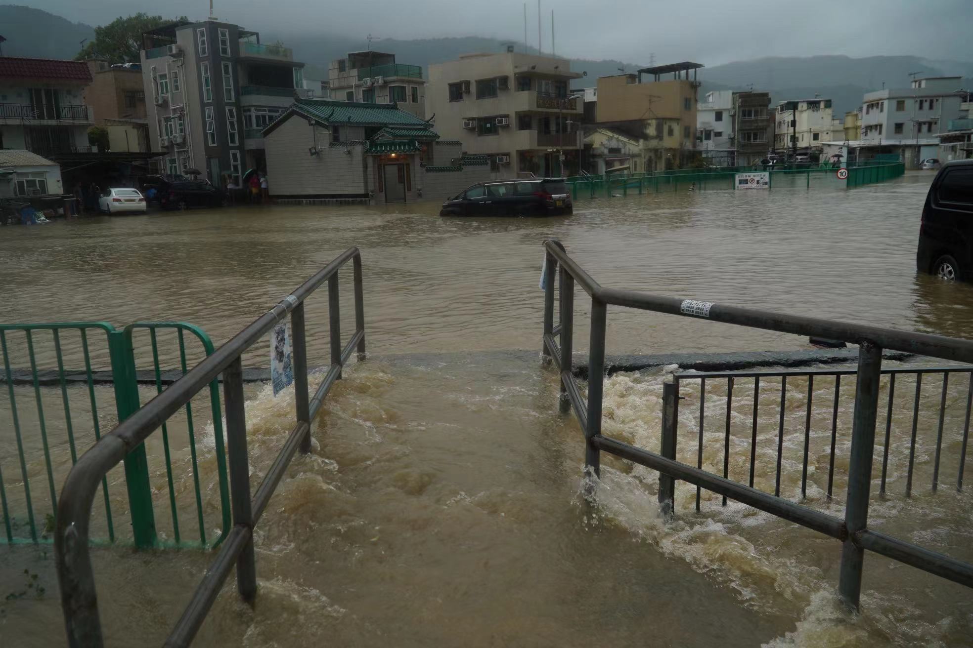 大公文匯全媒體報道,香港世紀暴雨仍然持續,天文台昨晚先後發出暴雨警告信號、山泥傾瀉警告,以及新界北部水浸特別報告。記者今早(8日)到新界元朗錦田視察,發現有多個屋苑嚴重水浸,部分地區水流湍急,更有橋樑被洪水沖毁。記者到場時已有消防及救援人員在場,檢查是否有人被困在屋苑內。