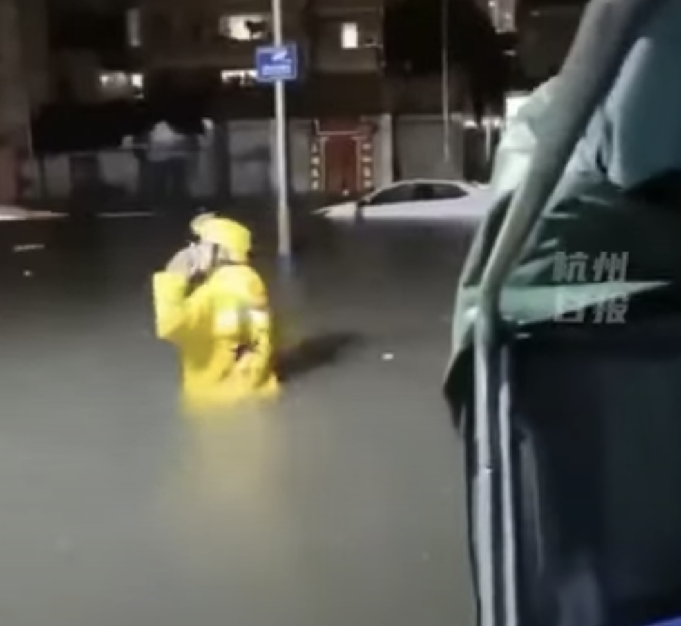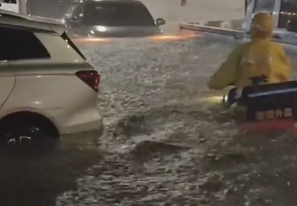 大公文匯全媒體報道,世紀暴雨來襲,昨(7日)晚至今晨深圳市普降特大暴雨,重創深圳。一段深圳龍崗影片在網路瘋傳,影片顯示,一個外賣員在水淹及腰部的情況下仍在送外賣,拍攝者問外賣小哥「要送到幾號?」並給外賣小哥指路,感嘆「不容易!」。另有影片則顯示,年輕力壯的外賣員協助深圳市民度過湍急的水流。