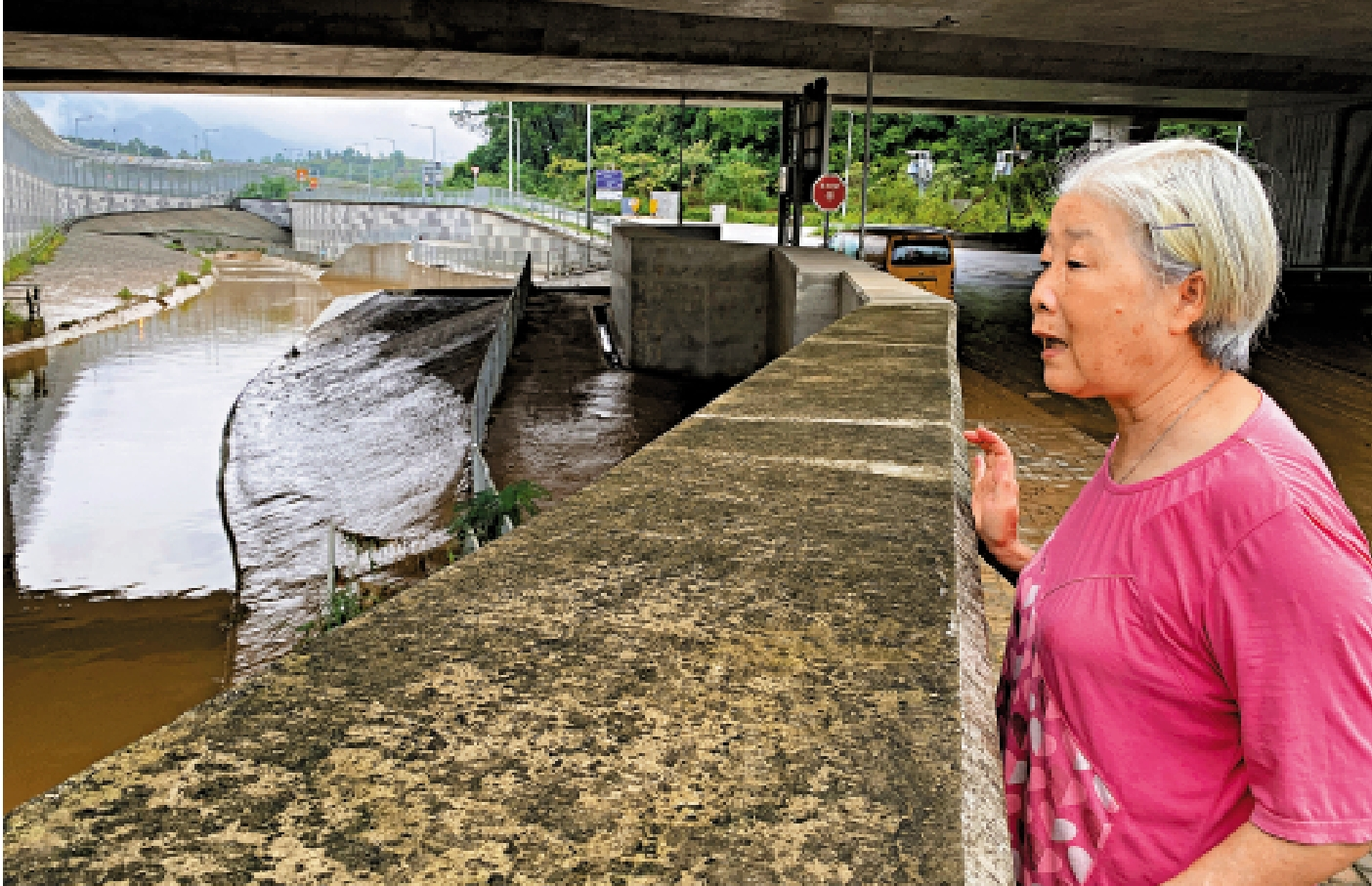 記者到北邊的松園下村,居民潘女士說:「我也不太清楚,所以就想出來走走親身看一下,河流水位的確有上升了。」她指着河道說,洩洪可能有流經周邊村屋,但現今的去水做得很好,即使流到下來,也足夠應付。