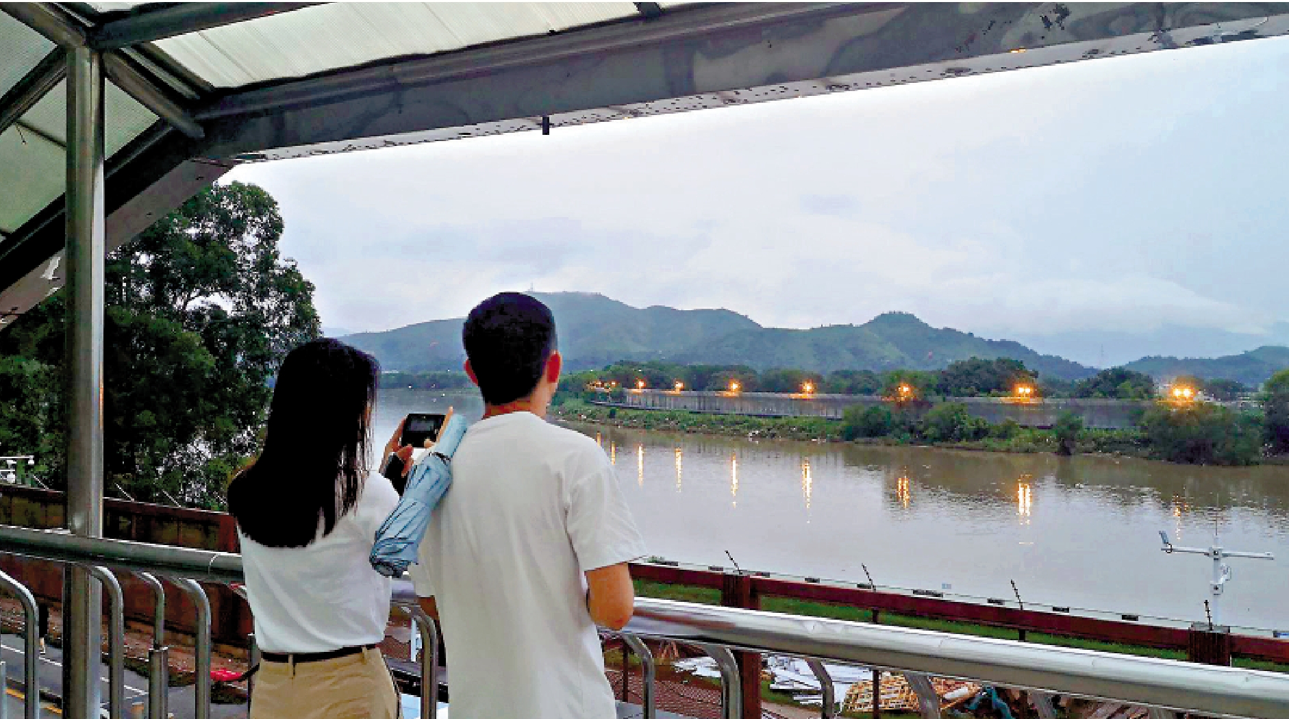 記者8日前往三個地段現場查看深圳河水流情況,發現距離深圳水庫較近的一段水流湍急,羅湖口岸附近的深圳河水位距堤岸目測仍有約兩米左右距離,河水相比平時有所上漲,但並未漫過堤岸,蔓延至香港方面。