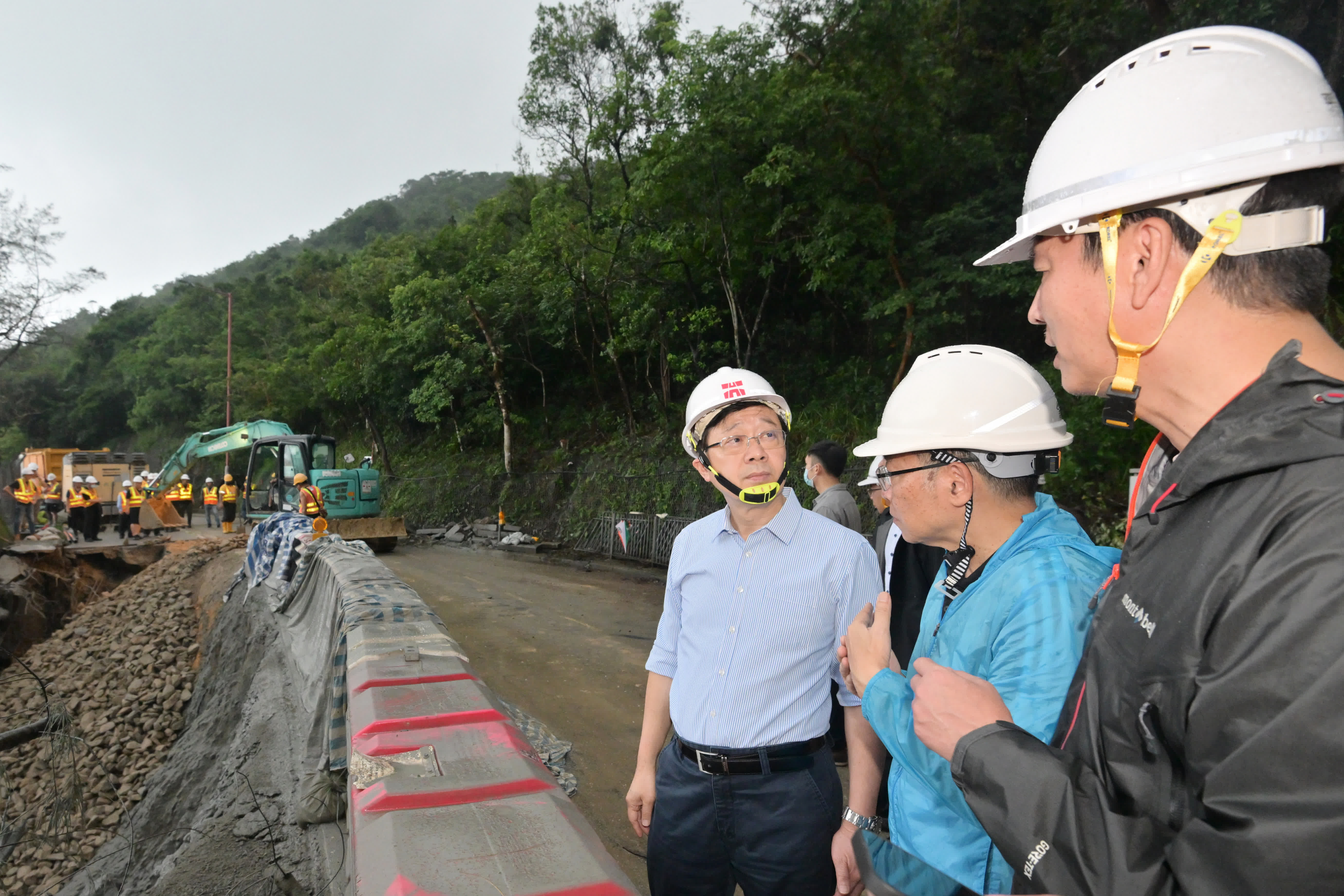 行政長官李家超昨日傍晚前往石澳山泥傾瀉現場視察。隨後,他在社交媒體發文表示,針對事故,已指示各部門必須爭分奪秒,搶修路面、為居民提供所需物資,以及做好撤離工作。行動主要分兩部分:運輸及物流局負責路面搶修,保安局則負責統籌提供物資及撤離。