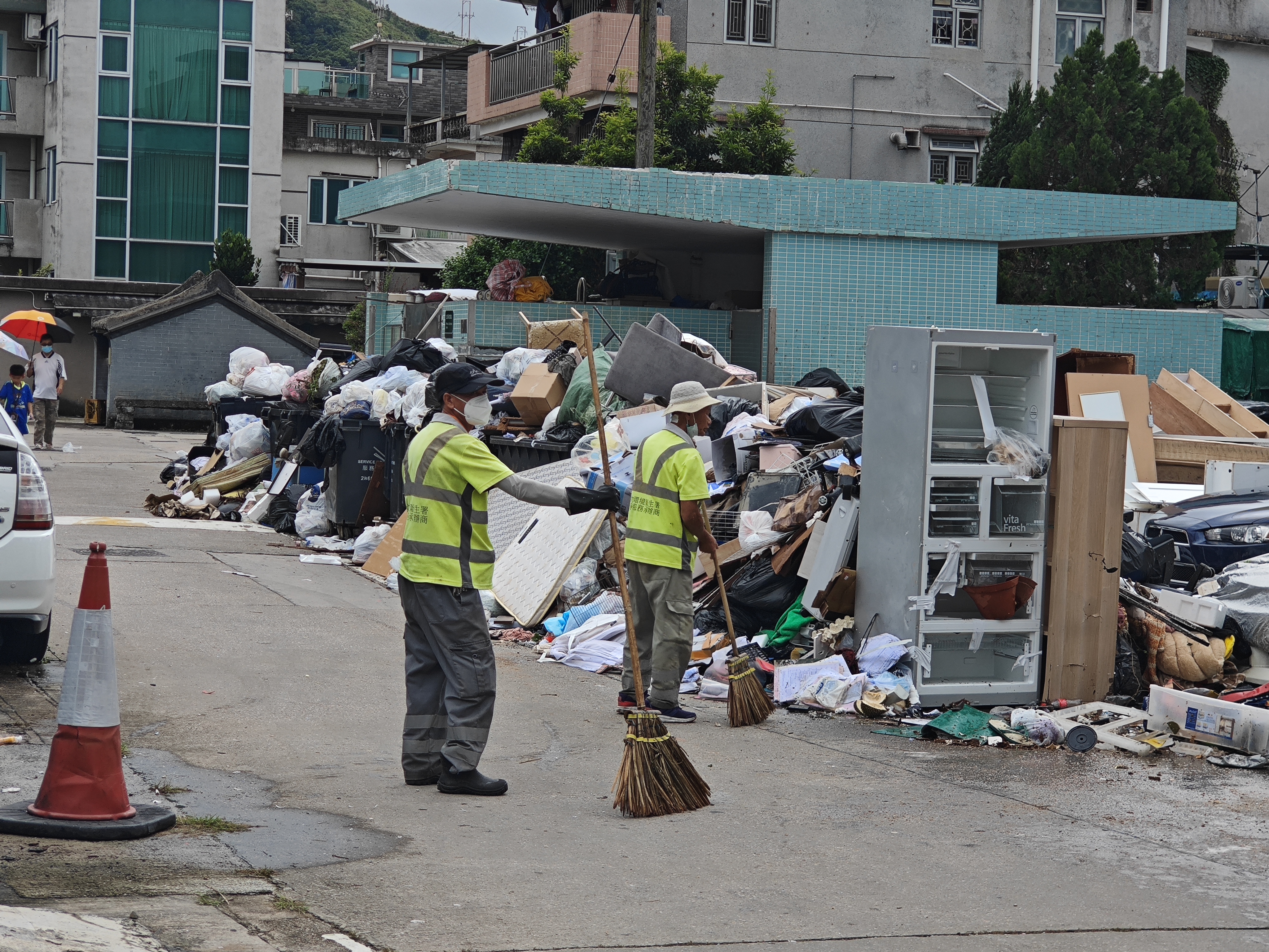 民建聯北區支部主席姚銘表示,許多鄉村首次出現嚴重水浸,大批傢俬、電器和家居雜物堆積在垃圾站和鄉郊道路,傳出惡臭,政府有必要同地區團體溝通合作,加強清理衞生黑點,避免次生災害發生。他形容,善後工程繁複,且費用龐大,如資源許可,政府可適當地提供經濟支援,整合地區團體的資源安排人手,優先幫忙獨居和雙老長者搬運和棄置家居雜物。