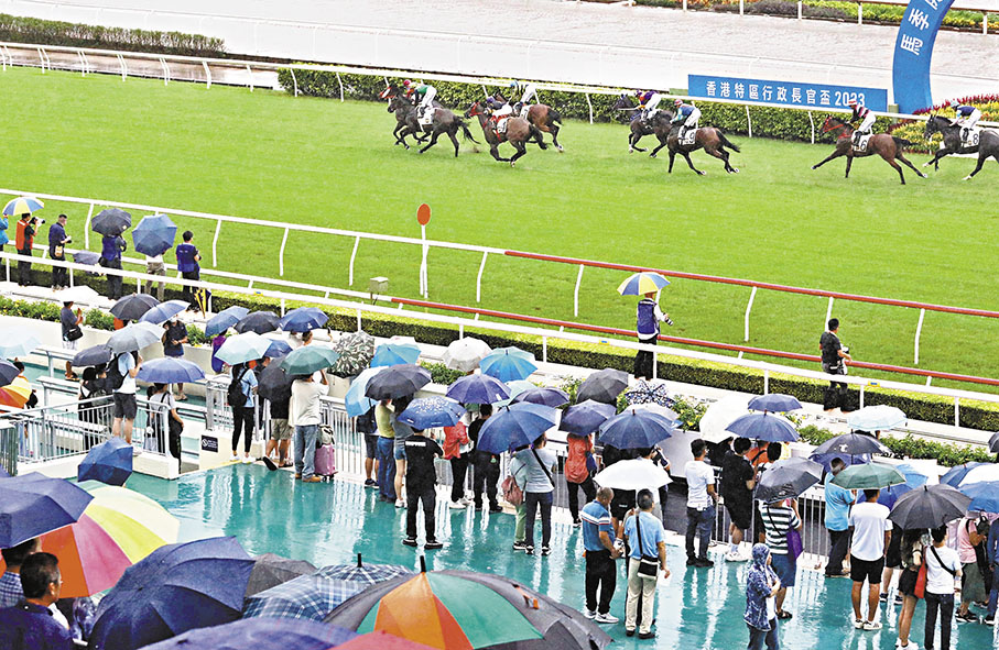 (香港文匯報記者 郭倩)經歷世紀暴雨後,全港多區受到不少影響,但無阻馬照跑。2023/2024年度馬季昨日開鑼,並在沙田馬場上演10場賽事,逾3.6萬馬迷冒着大雨進入沙田及跑馬地兩個馬場觀賽,當中7%至8%為內地旅客,他們均希望能在新馬季取得「開門紅」。有第一次買馬的遊客大讚現場氣氛熱烈,並笑說:「運氣很好,第一次買馬就贏!」全日賽事共吸引近13億元投注額,較上季開鑼日下跌8%。馬會行政總裁應家柏於賽後表示,投注額下跌主因是近日惡劣天氣下,馬匹有數天無法如常到跑道操練,令昨日的參賽馬匹數目較上季開鑼日減少逾30%,因此投注額已令人滿意。