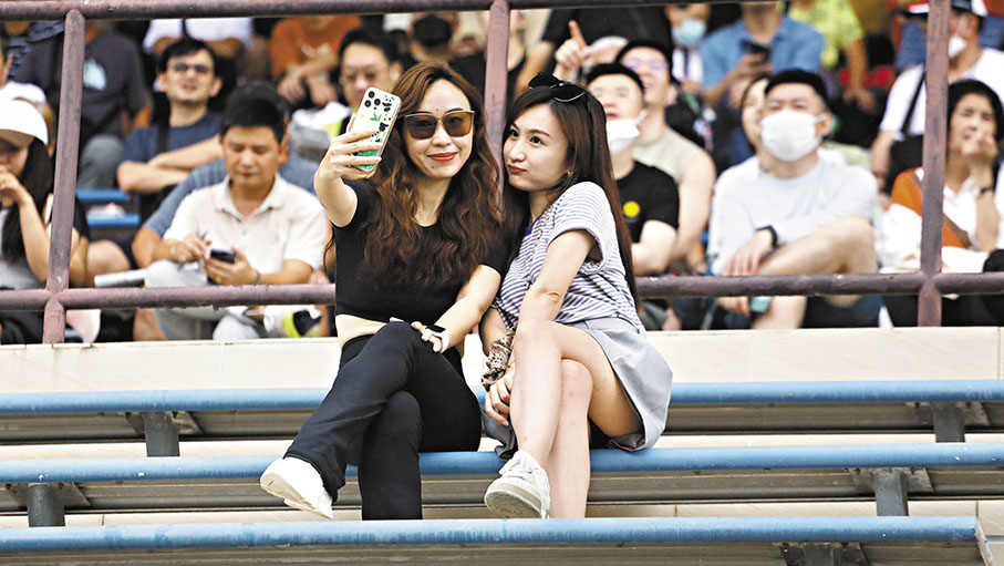 在港唸書的內地人蔡同學和謝同學結伴同行去觀賽,「終於能看到賽馬了,好開心!」蔡同學認為,賽馬是香港的特色之一,是獨特文化中的一部分,「來香港一定要看一次賽馬,現在終於能『打卡』。」謝同學則指,到港不足兩周則經歷颱風與暴雨,鮮有機會到外面遊玩,「能去馬場觀賽感到很興奮!」