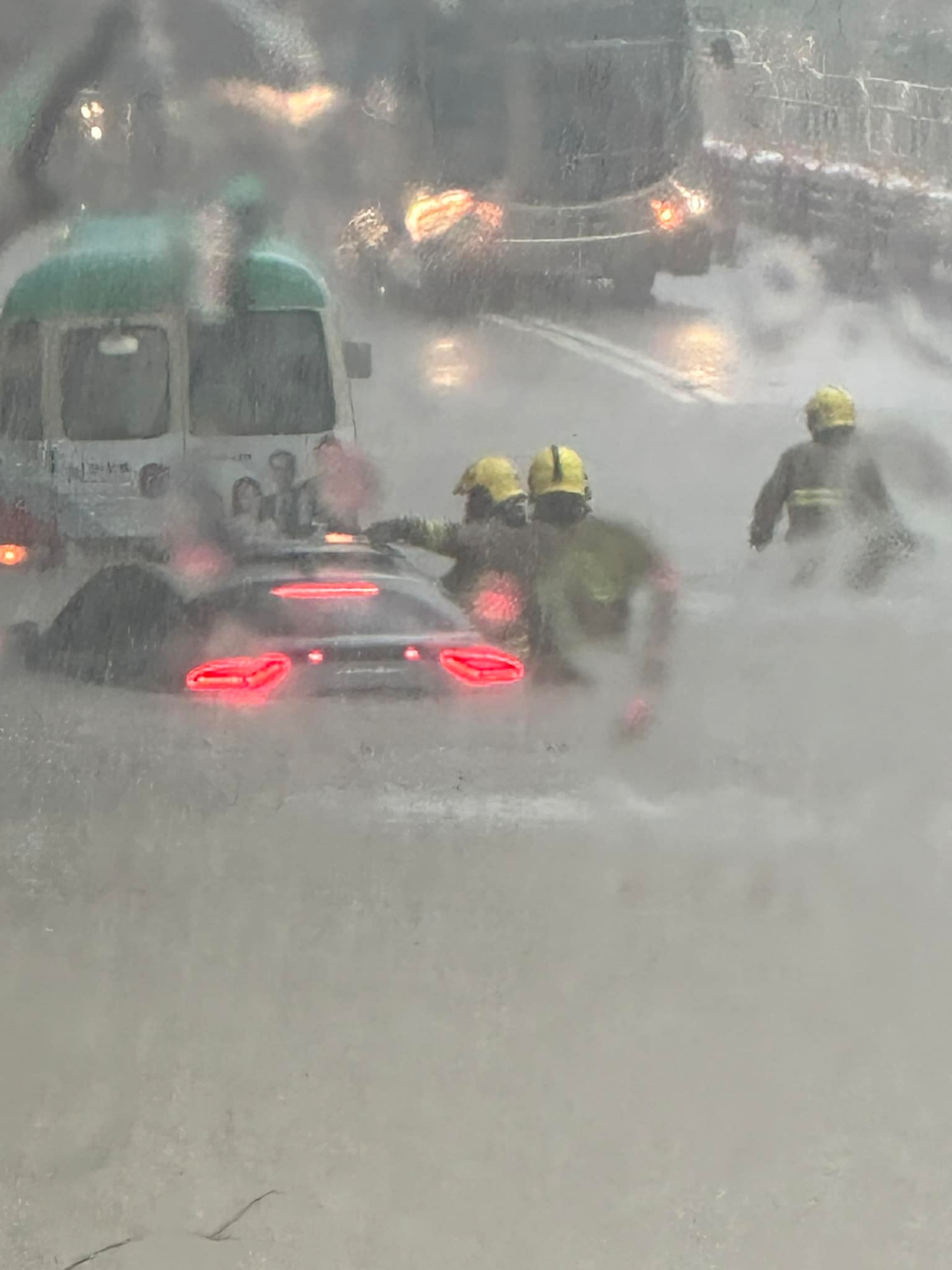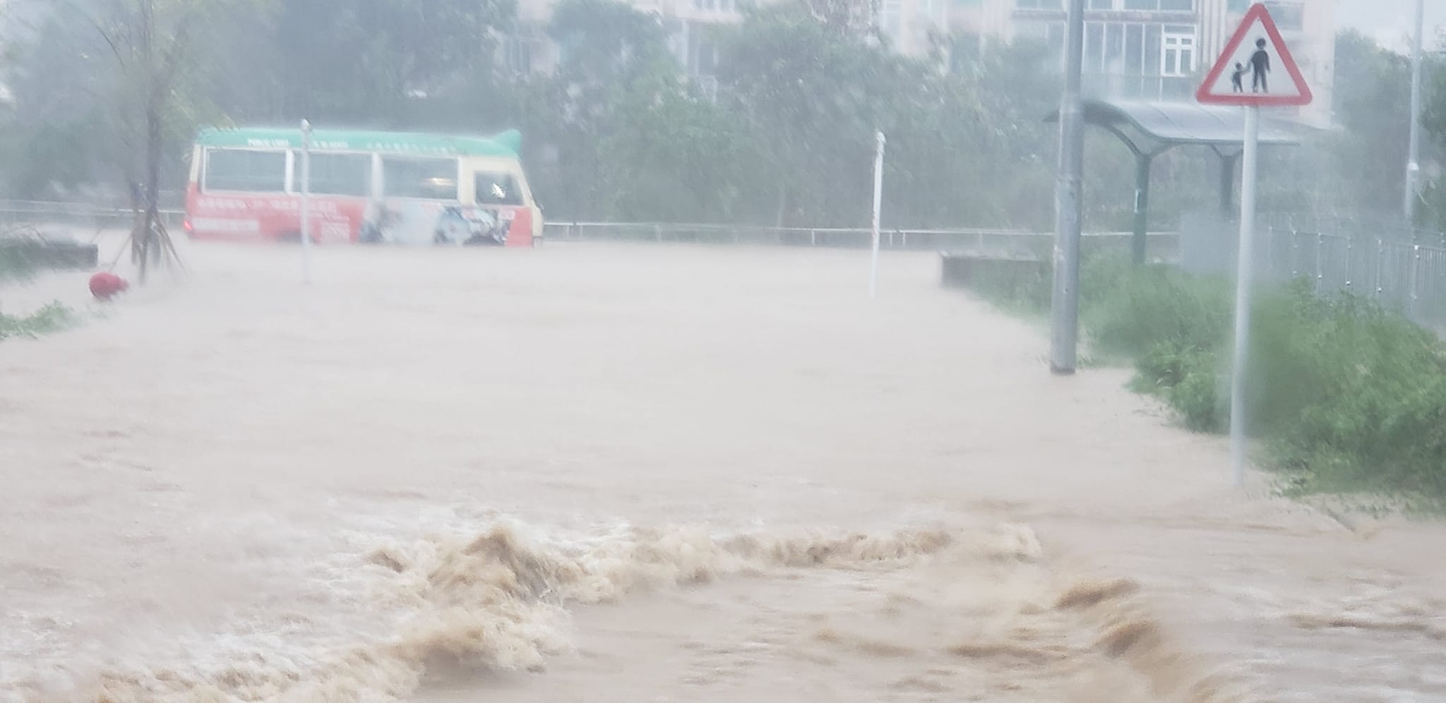 有小巴在將軍澳寶琳路近馬游塘村行駛途中,被水淹半個車身,小巴司機及乘客被困在車廂。有網民於社交平台上載影片,指翠林邨後山有泥水瀑布從山上流下,馬路亦出現水浸。