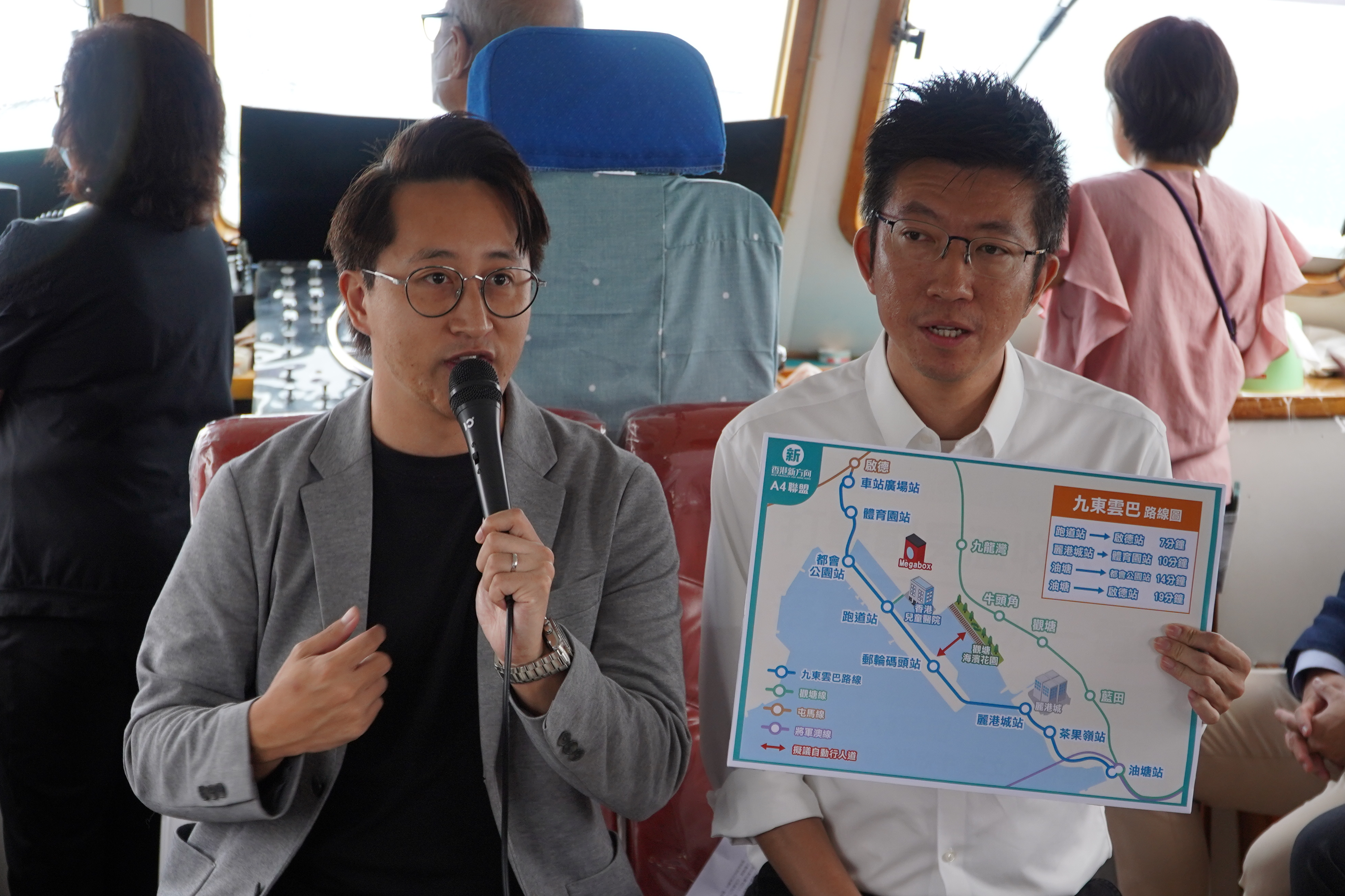 (大公文匯全媒體 記者 李九歌)由內地電動車生產商比亞迪研發的無人駕駛列車「雲巴」,是一項綠色集體運輸系統技術,有助提升區內公共運輸效能、成本效益和可持續性。立法會「A4聯盟」楊永杰、張欣宇、林素蔚、梁文廣與香港新方向成員建議興建「九東雲巴」跨海橋,解決啟德交通問題之餘,亦可打造出一條亮麗的海濱風景線。「A4聯盟」今日(11日)安排遊船,沿途向傳媒講解「九東雲巴」走線和興建跨灣大橋的必要性和可行性。
