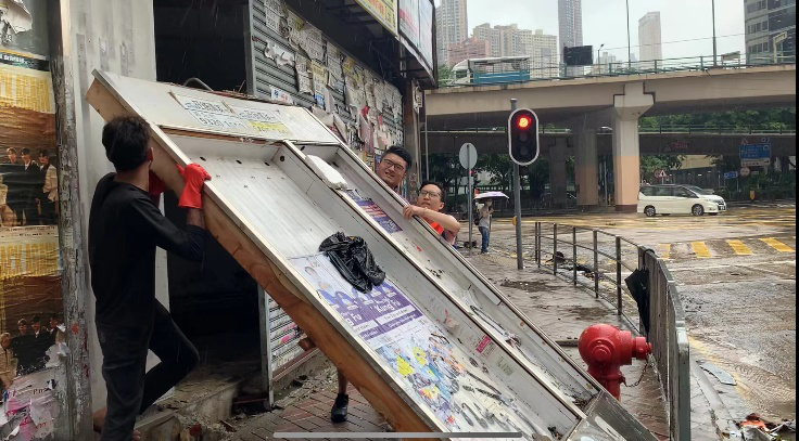 遇上大暴雨,灣仔天樂里一帶嚴重水浸,多輛汽車「死火」停泊路中心,大量淤泥伴隨積水湧入附近店舖,多個店舖損失嚴重,街道上多處出現塌招牌情況。社區幹事穆家駿、陳志興到愛群、大佛口等小區,與少數族裔工人一同清理倒下路牌,更帶同物資行樓梯上樓,送給大廈電梯損毀的居民。軒尼詩道多處泥濘,社區幹事黃守東組織居民,組織多個小分隊到場用鐵鏟清理,疏通渠道恢復道路暢通。