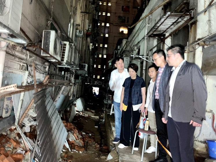 維園區受災嚴重,民建聯灣仔支部主席周潔冰走訪維園區多棟大廈,調動區內力量合力救援。其中,金銀海都樓電錶房進水致大廈停電,周潔冰即時聯絡電力公司盡快搶修,其間還上樓慰問居民。
