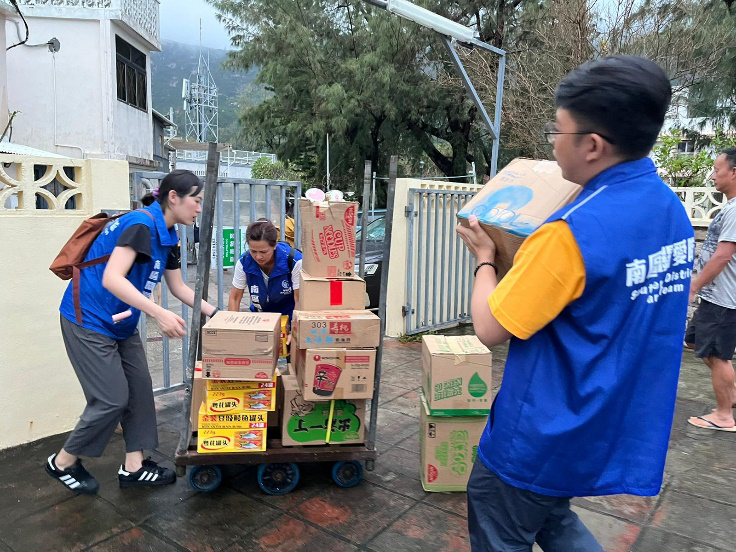 南區各關愛隊抽調人手迅速組建石澳救援小隊,籌集了食品等物資,乘坐水警輪前往石澳,提供緊急救援和支援。由於石澳和大浪灣一帶沒有碼頭,需要安排水警快艇接載居民到消防船上,並優先安排特別需要人士和輪椅人士優先撤離。部分南區關愛隊員在銅鑼灣的庇護中心候命和做好準備,協助鋪設床鋪,準備好食物,接待石澳居民入住並送上慰問,讓居民在安全舒適的環境中安心休息。