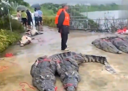 大公文匯全媒體報道,近日受台風「海葵」殘餘渦旋影響,華南一帶持續暴雨,多地出現內澇和洪水。廣東茂名大雨,茂南區一個鱷魚養殖場70多條鱷魚外逃。